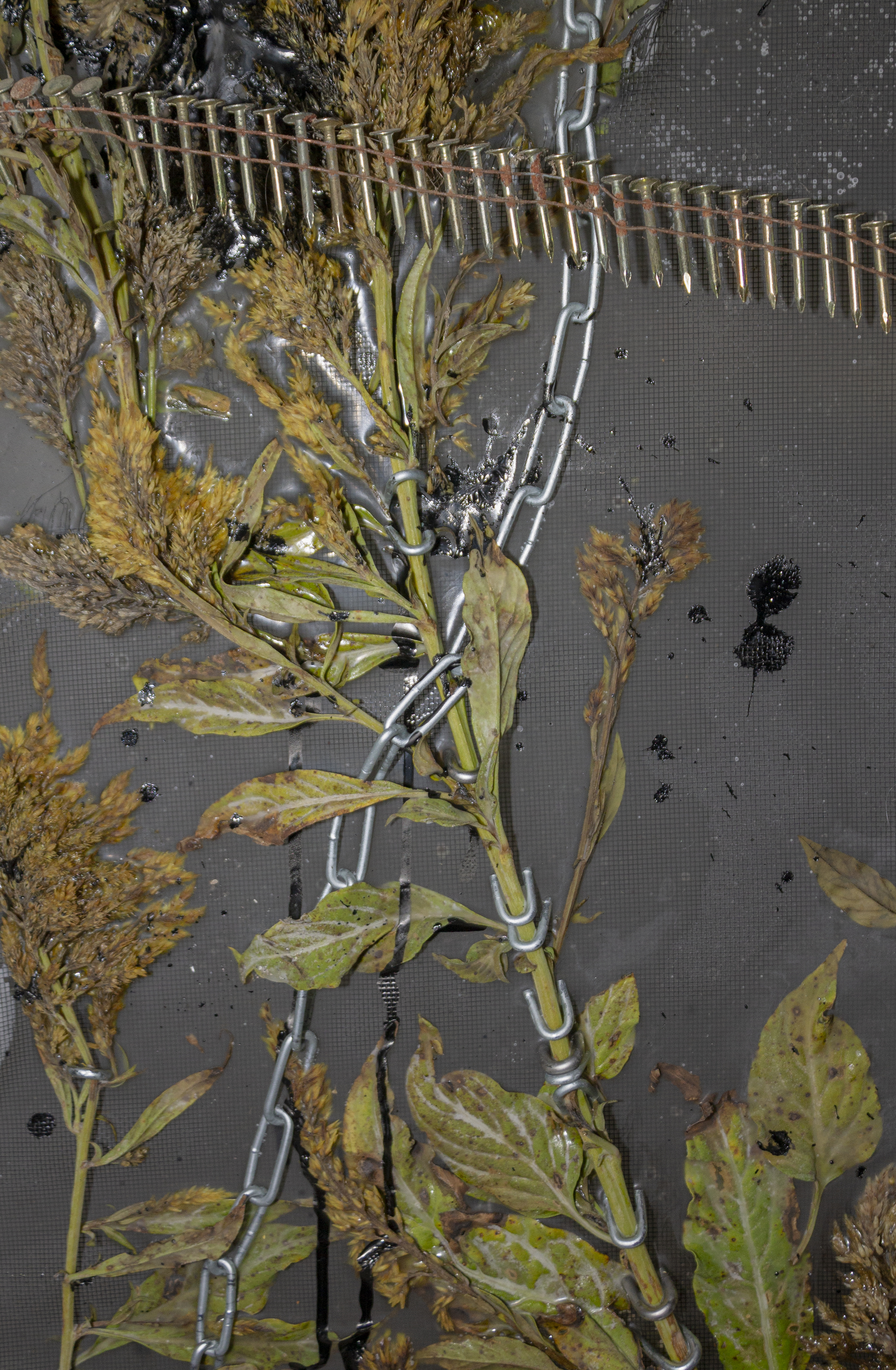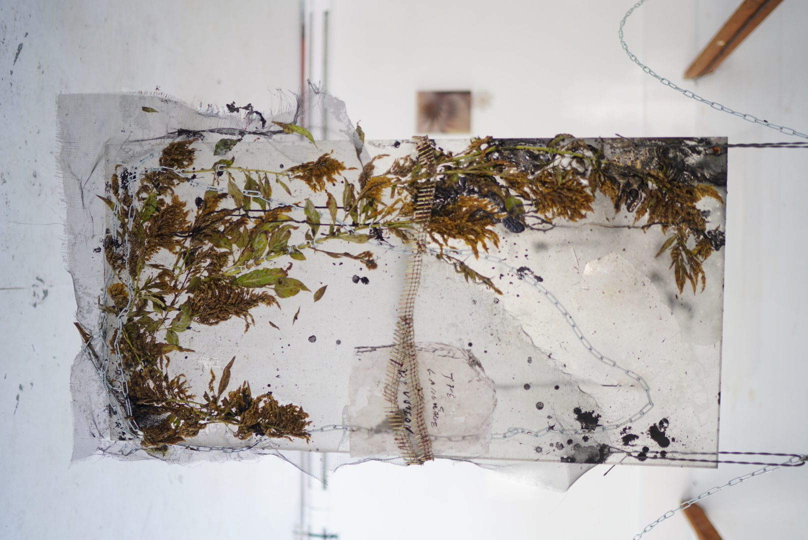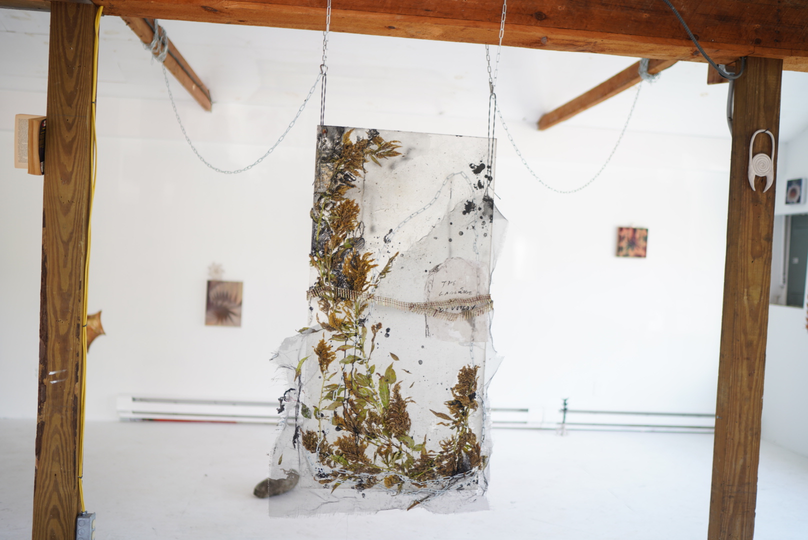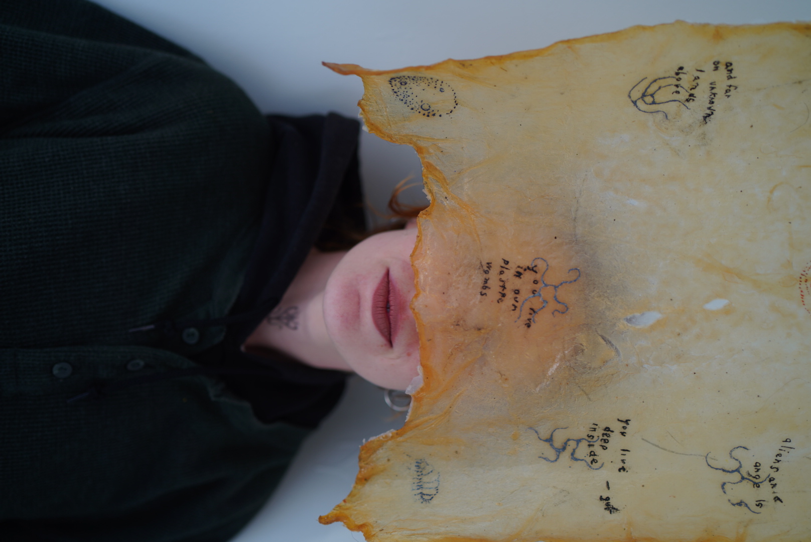 Alex Patrick Dyck is a multimedia poet, splosh artist, frog man & medicine maker; a romantic hoarder of sentimental trash and trampled roses, an altar builder, memory gatherer, a seeker seeking. They work with the interaction of plants, dye, resin, textiles, bodily fluids, text & chains as a way to explore the life-death-life cycle of the natural world. The subjective nature of interacting with the written word establishes intimacy but also exemplifies that language, and the ways we experience and interpret through it, is not identic to understanding. The works they make are constantly decaying and changing in texture and color, a reminder that all things change; "god is change."* By working towards living in fluid reciprocity they seek to reconnect with the ways their ancestors lived upon the earth.