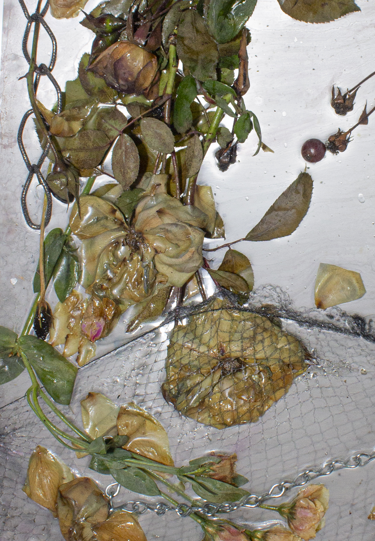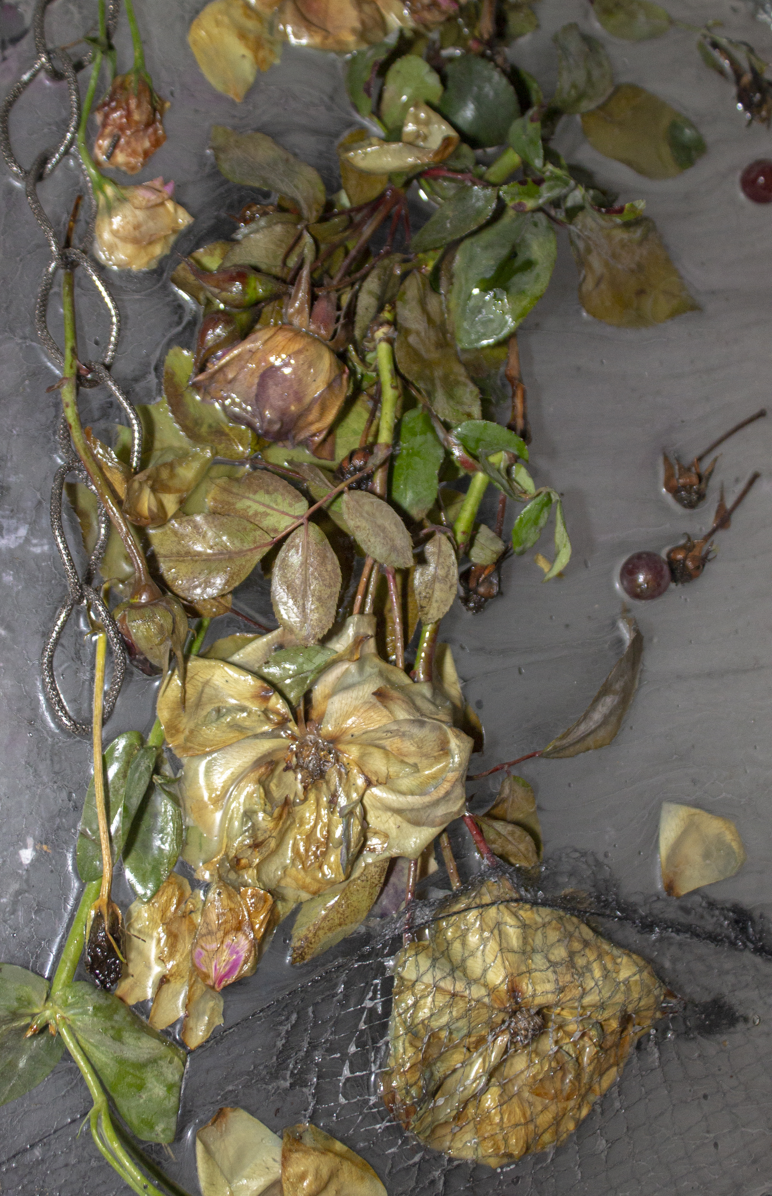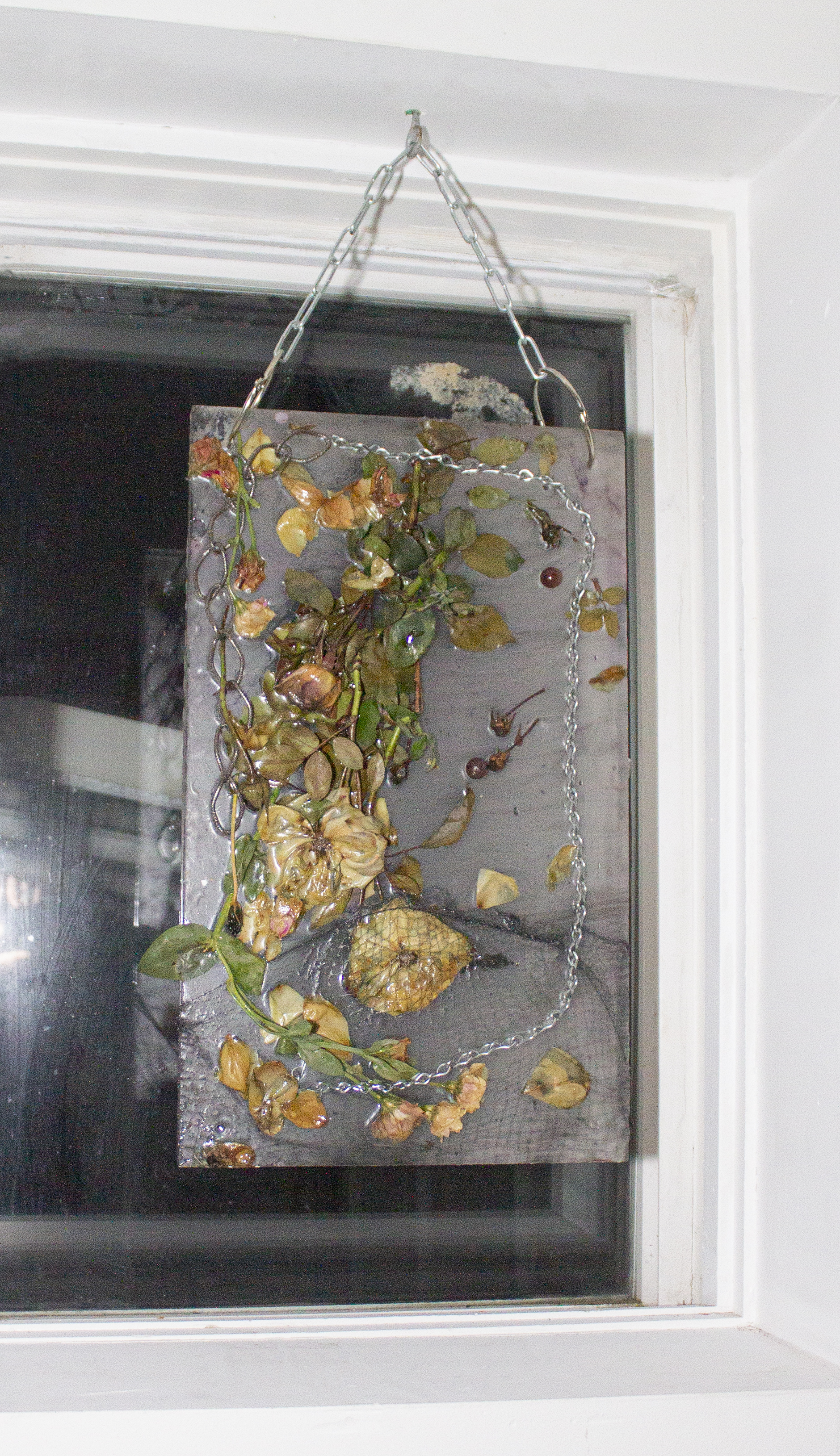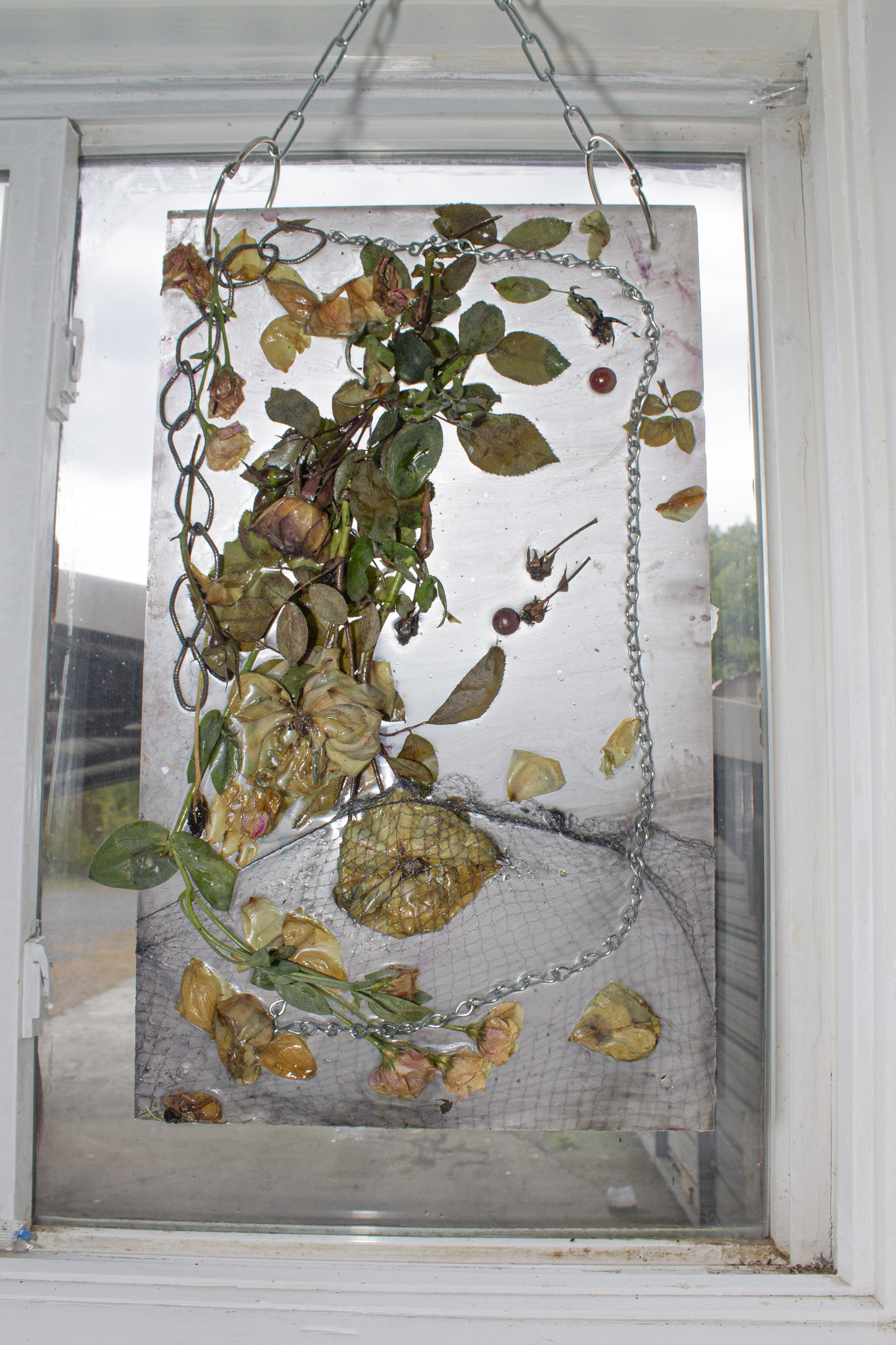Alex Patrick Dyck is a multimedia poet, splosh artist, frog man & medicine maker; a romantic hoarder of sentimental trash and trampled roses, an altar builder, memory gatherer, a seeker seeking. They work with the interaction of plants, dye, resin, textiles, bodily fluids, text & chains as a way to explore the life-death-life cycle of the natural world. The subjective nature of interacting with the written word establishes intimacy but also exemplifies that language, and the ways we experience and interpret through it, is not identic to understanding. The works they make are constantly decaying and changing in texture and color, a reminder that all things change; "god is change."* By working towards living in fluid reciprocity they seek to reconnect with the ways their ancestors lived upon the earth.