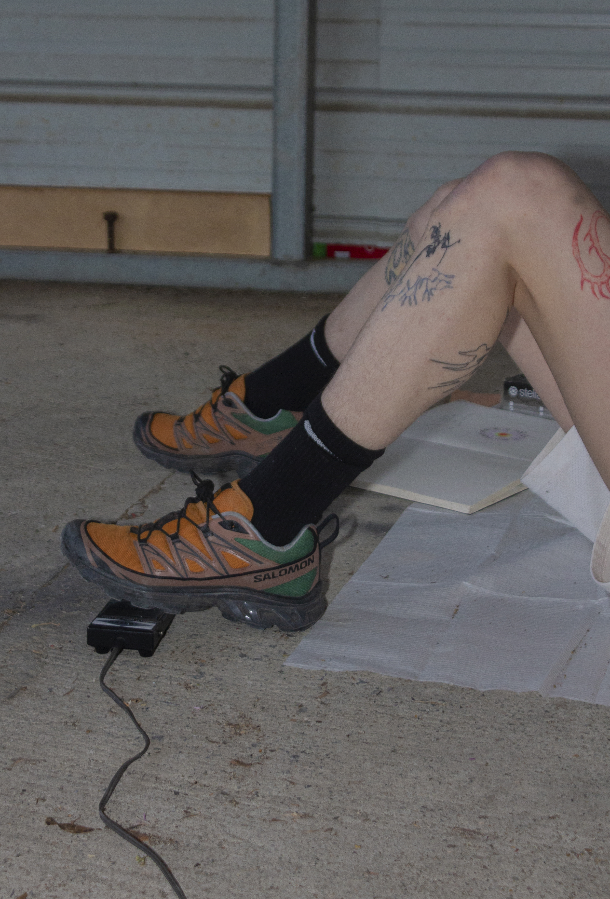 éli del aims to dive into crude, visceral and enlightening experiences to come back and share what they have found in the abyss. Their practice makes use of calligraphy, diagrams, drawings, songs and tattoos, tools which allow them to connect to their epigenetic legacy of trauma, poverty, mental health and addiction problems, while invoking an inspiring heritage of witchcraft, visions and spirituality. This process leads to pictorial objects that form an erratic cartography inspired by Chaos Magick, psycho-pop literature and ecofeminist practices. Like molts that result from moments of healing, evolution or involution, their works integrate poetic messages – a sibylline prose that is blurred by sharp and sinuous scribbles and abstruse symbols. This textual aspect of their work is made to be sung, deciphered, or left to interpretation, taking the form of motivational phrases and enigmatic advice that serve as an invitation to regeneration, fluidity and ruin.