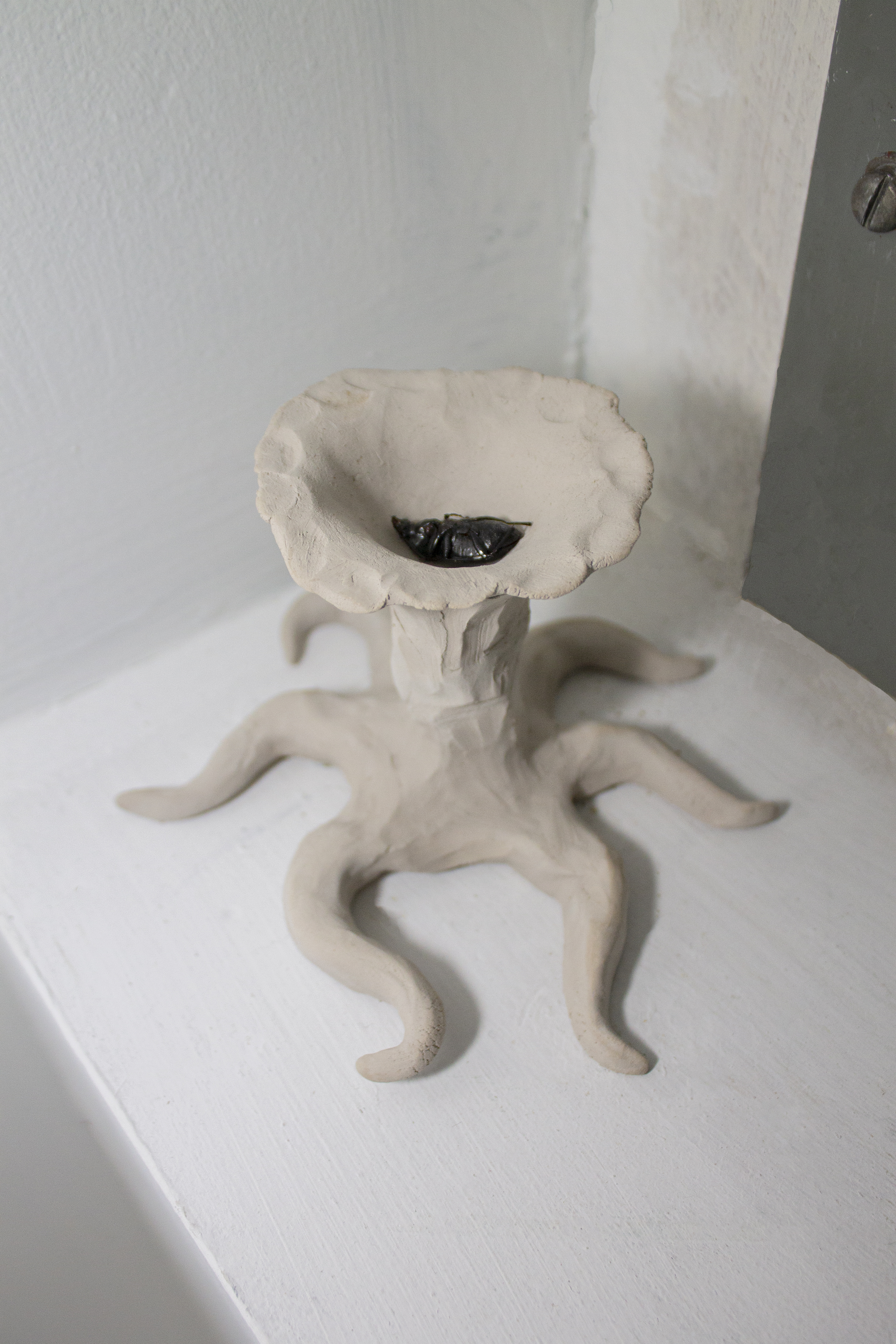 Cléo Sjölander explores the parallels between the defense mechanisms of animals, plants and humans. They are interested in adaptation as a sensitive response to vulnerability, meaning as a way to define and build safe spaces against the oppressive normativity and marginalization of those who oppose it. Their work is born out of a desire of healing and empowerment through dismantling the various domination dynamics imposed by the capitalist and patriarchal structures that govern our existence.