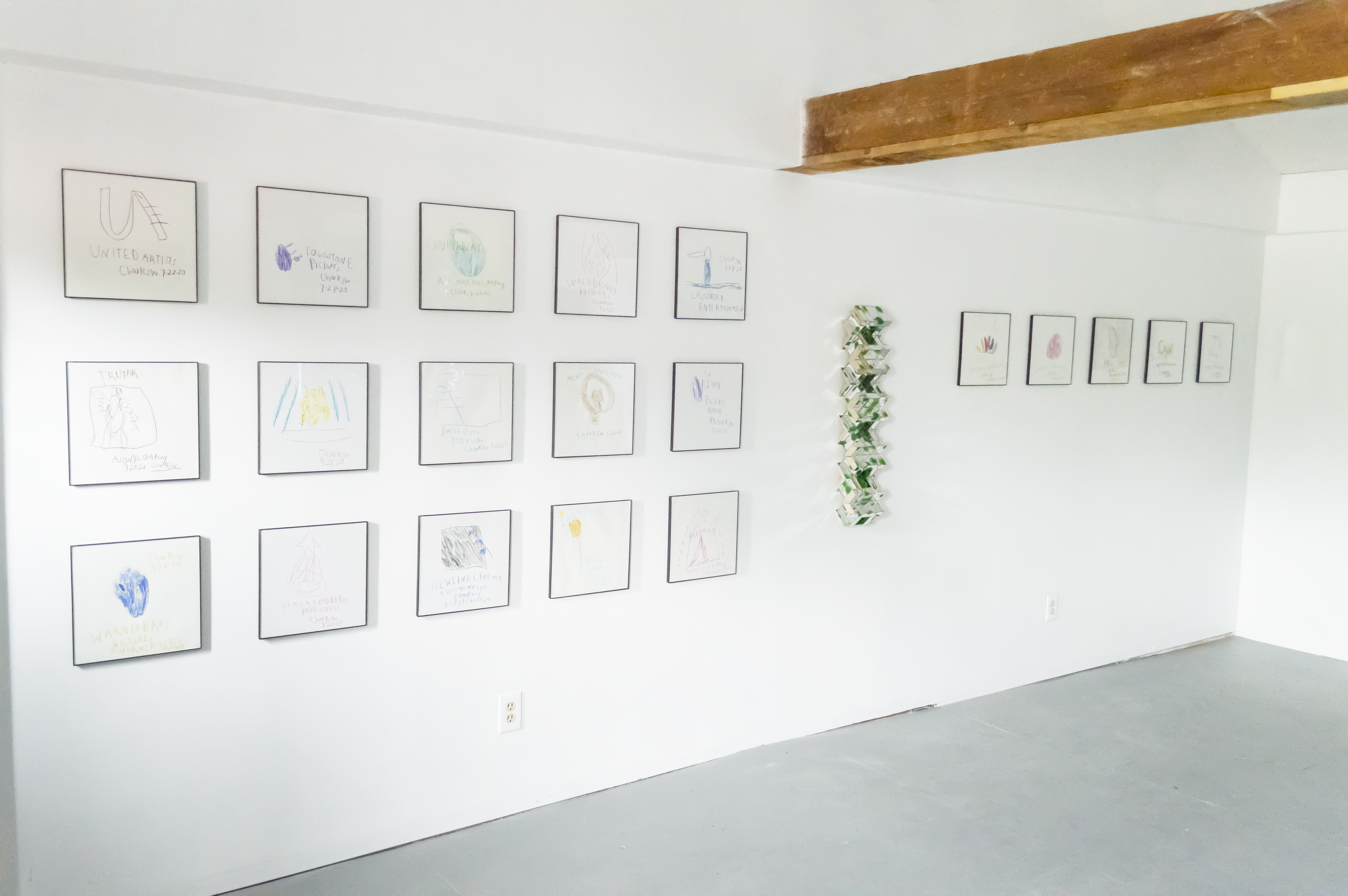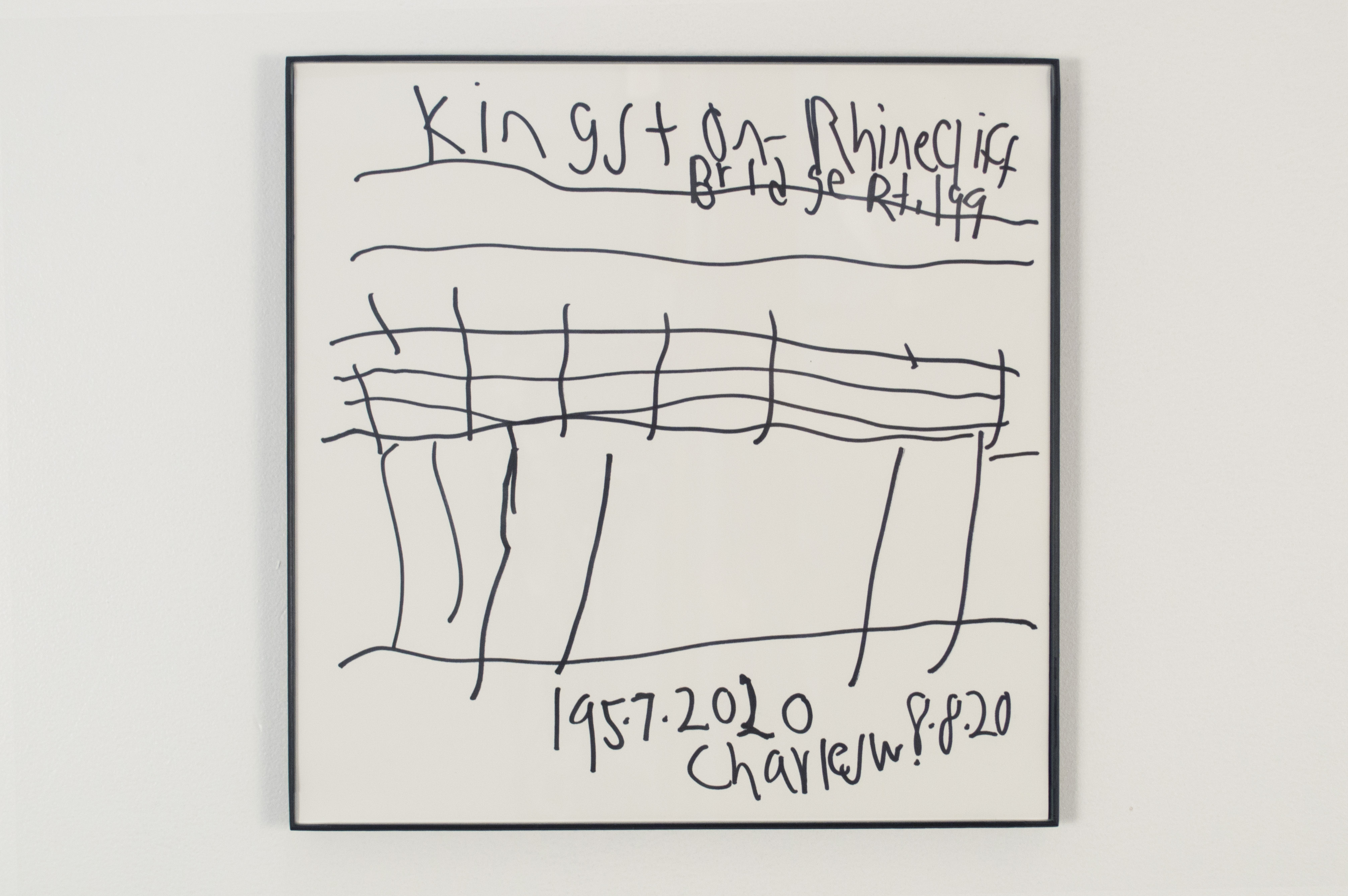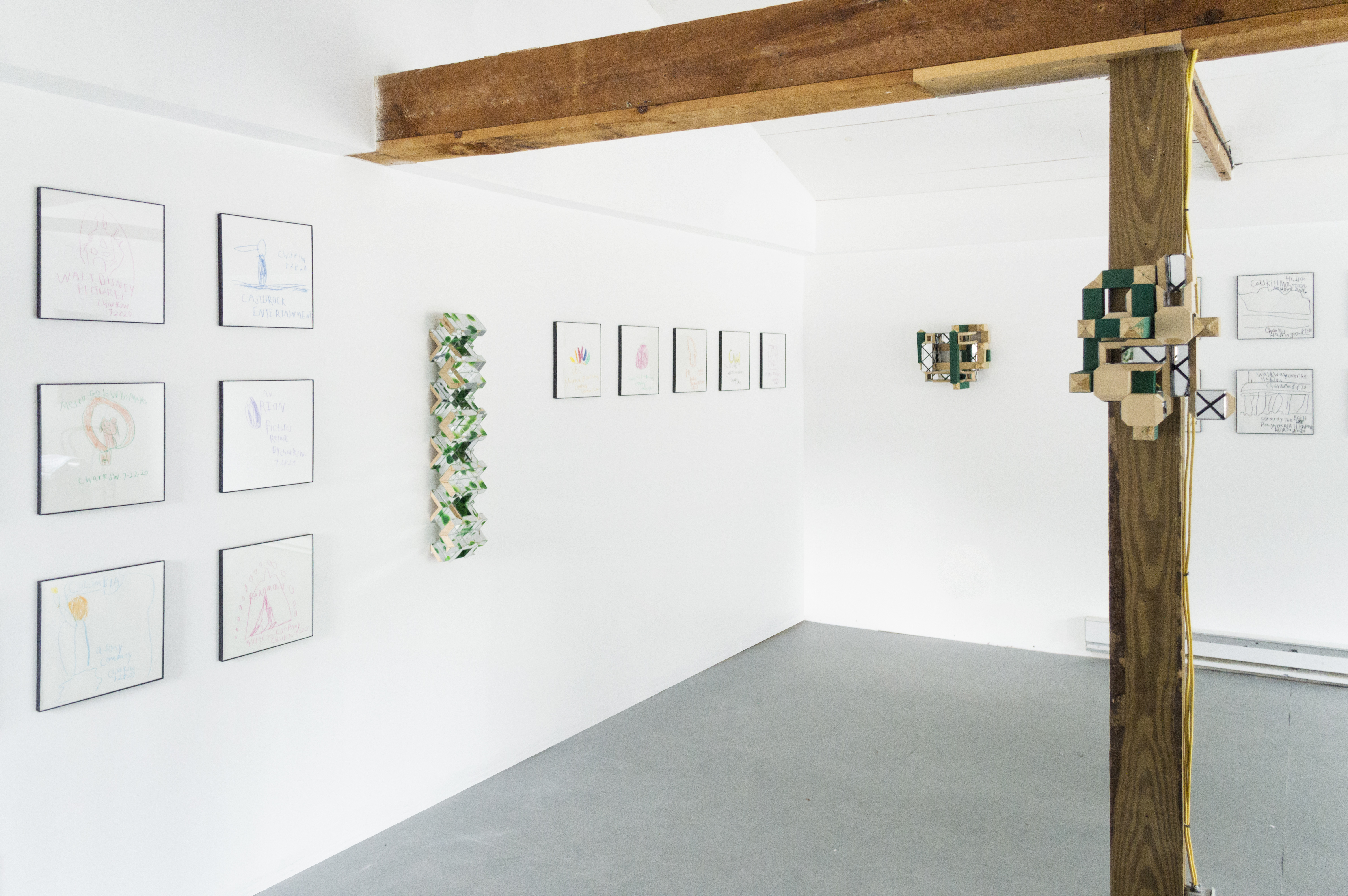 Charles is well known in Hudson for his drawings. Characterized by his interest in contemporary media and by his unmistakable sense of humor, his drawings have a linguistic quality and can be read as well as seen. Occasionally a portraitist, he usually works within a theme, quickly building exhaustive bodies of work on a given topic. This show includes a new group of drawings in ink on paper of Bridges in New York, including the Rip Van-Winkle Bridge, which connects Columbia County with Greene County, with one drawing in this series commemorating the Twin Towers. Charles is also showing a series in one of his signature themes - entertainment logos. These logos, though only seen briefly before a film or TV show, are familiar. We see these liminal images in the moments before a program begins, usually accompanied by a sound logo. Here, in a Warholian maneuver (it's worth mentioning that Charles is a DJ,) Charles samples the logo making it the focus of his work, shifting our attention from the content of the film or TV show to what the second artist in this show, Charlie Smith, calls the "envelope."