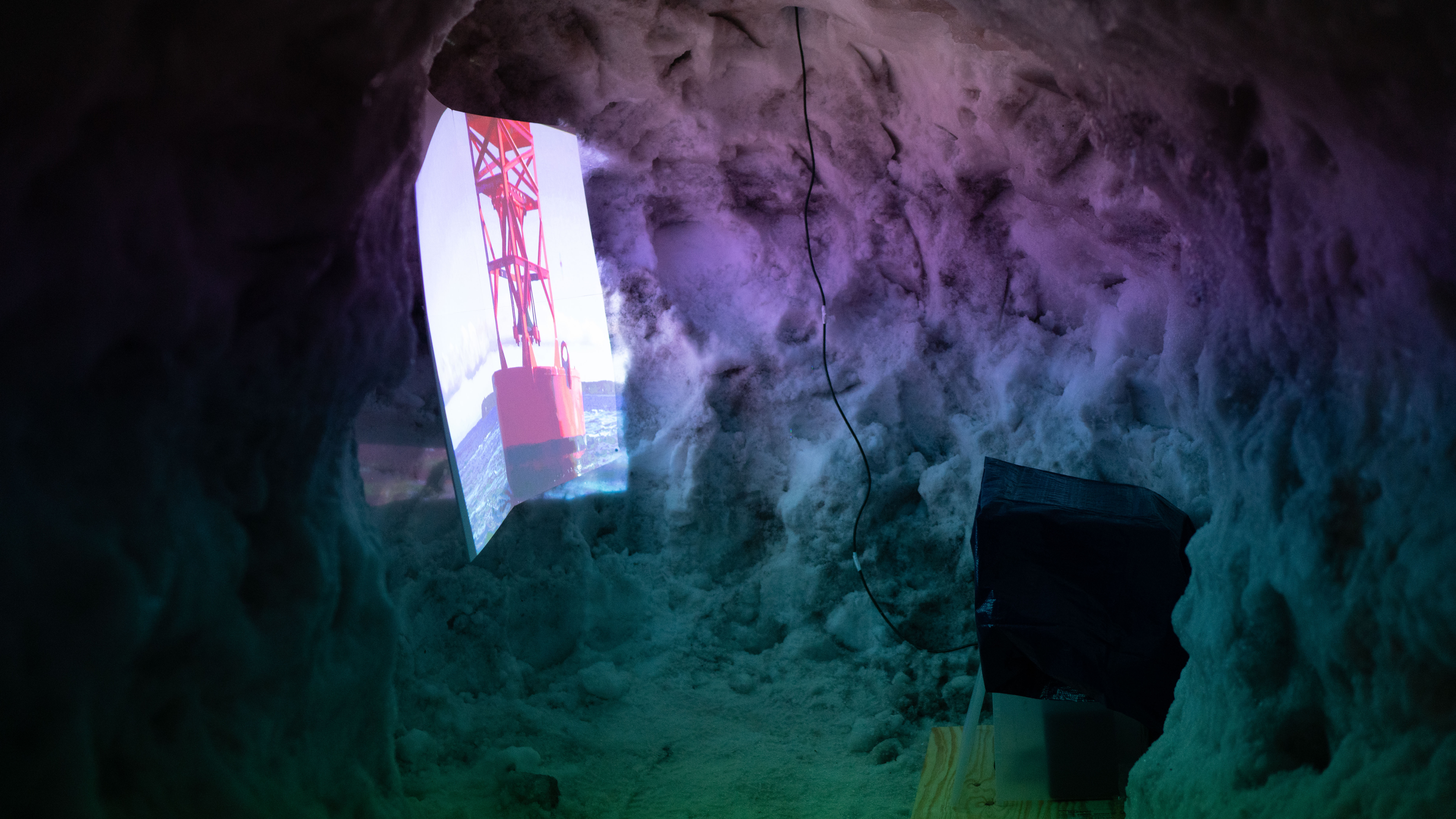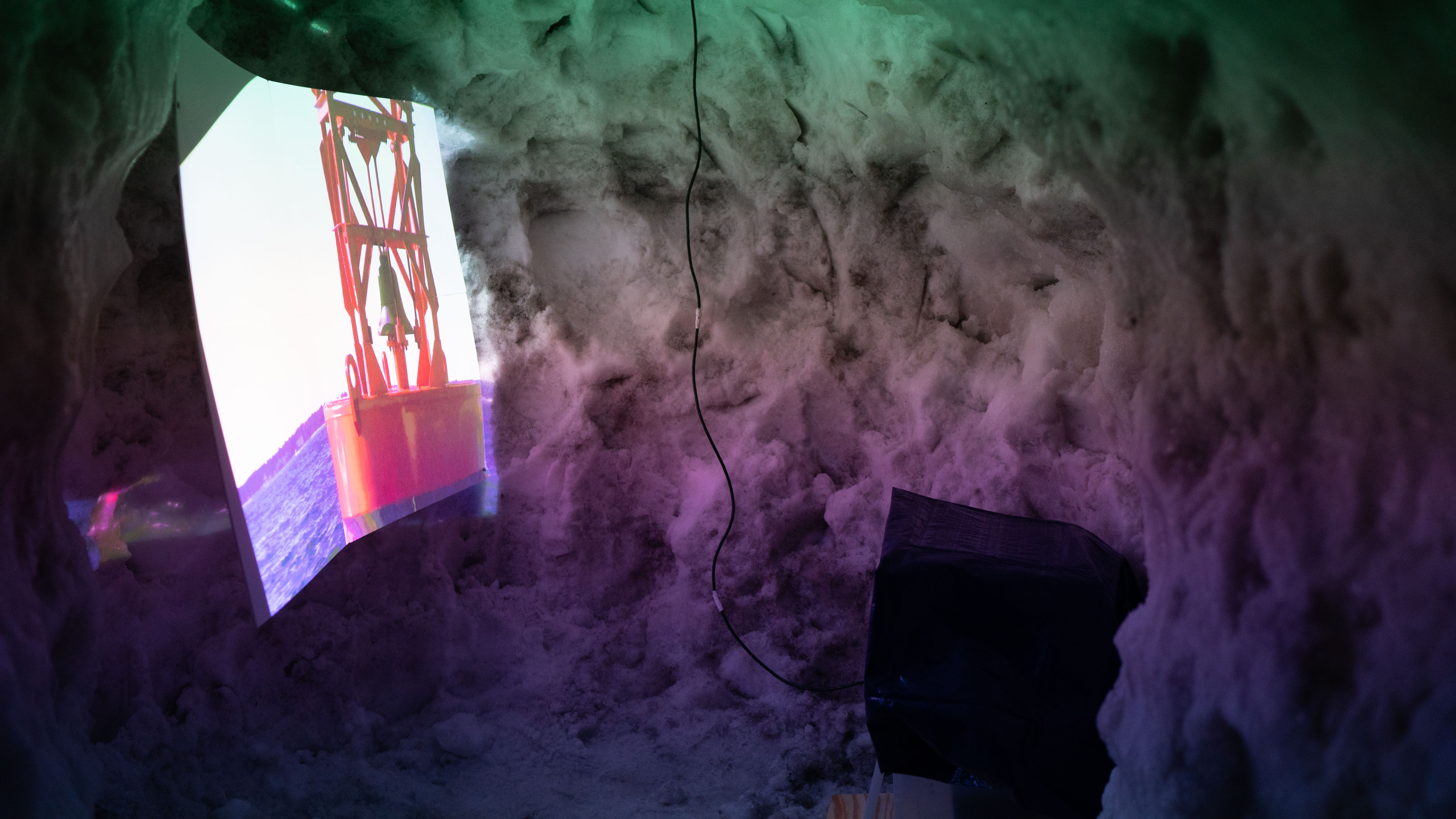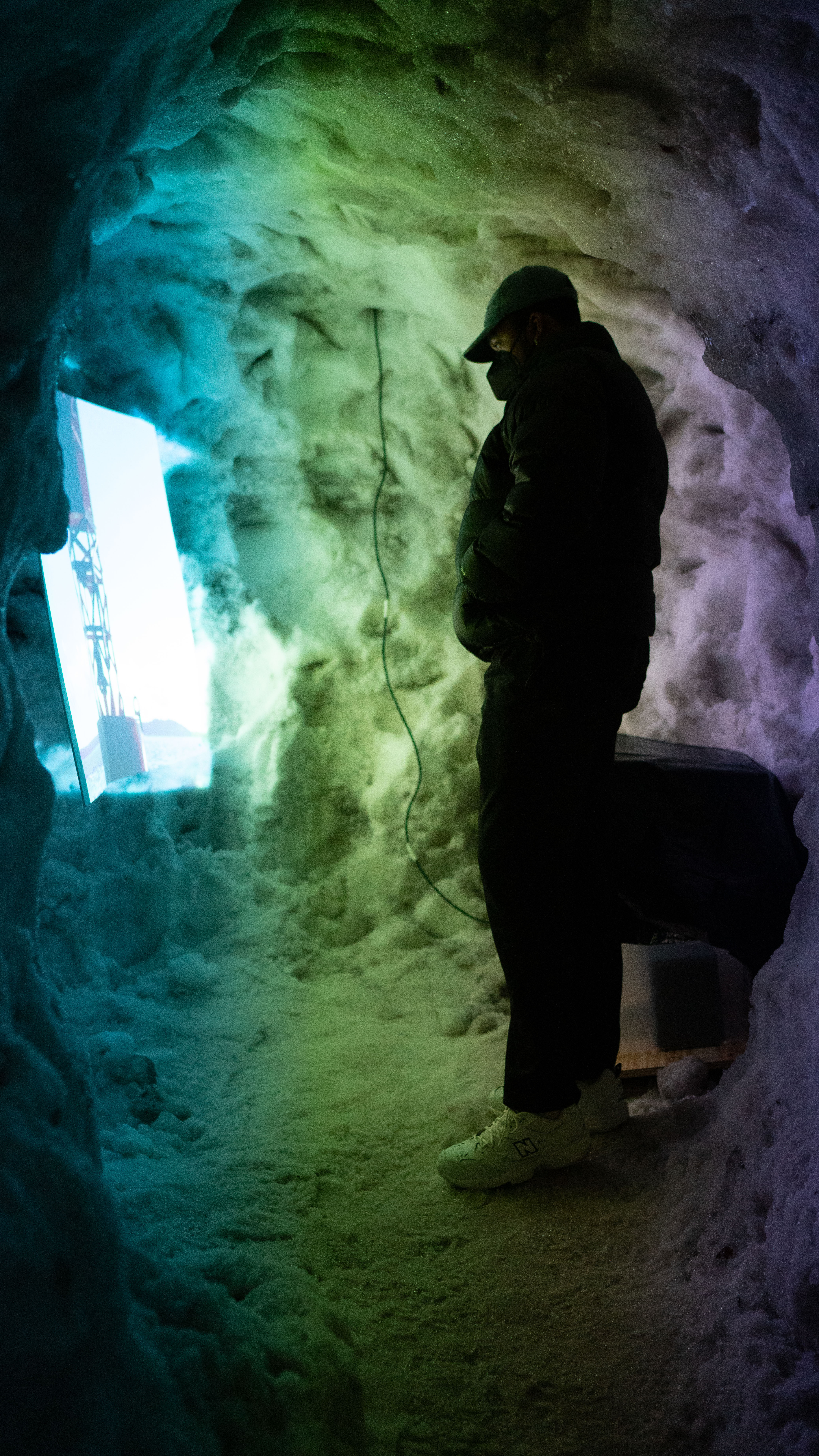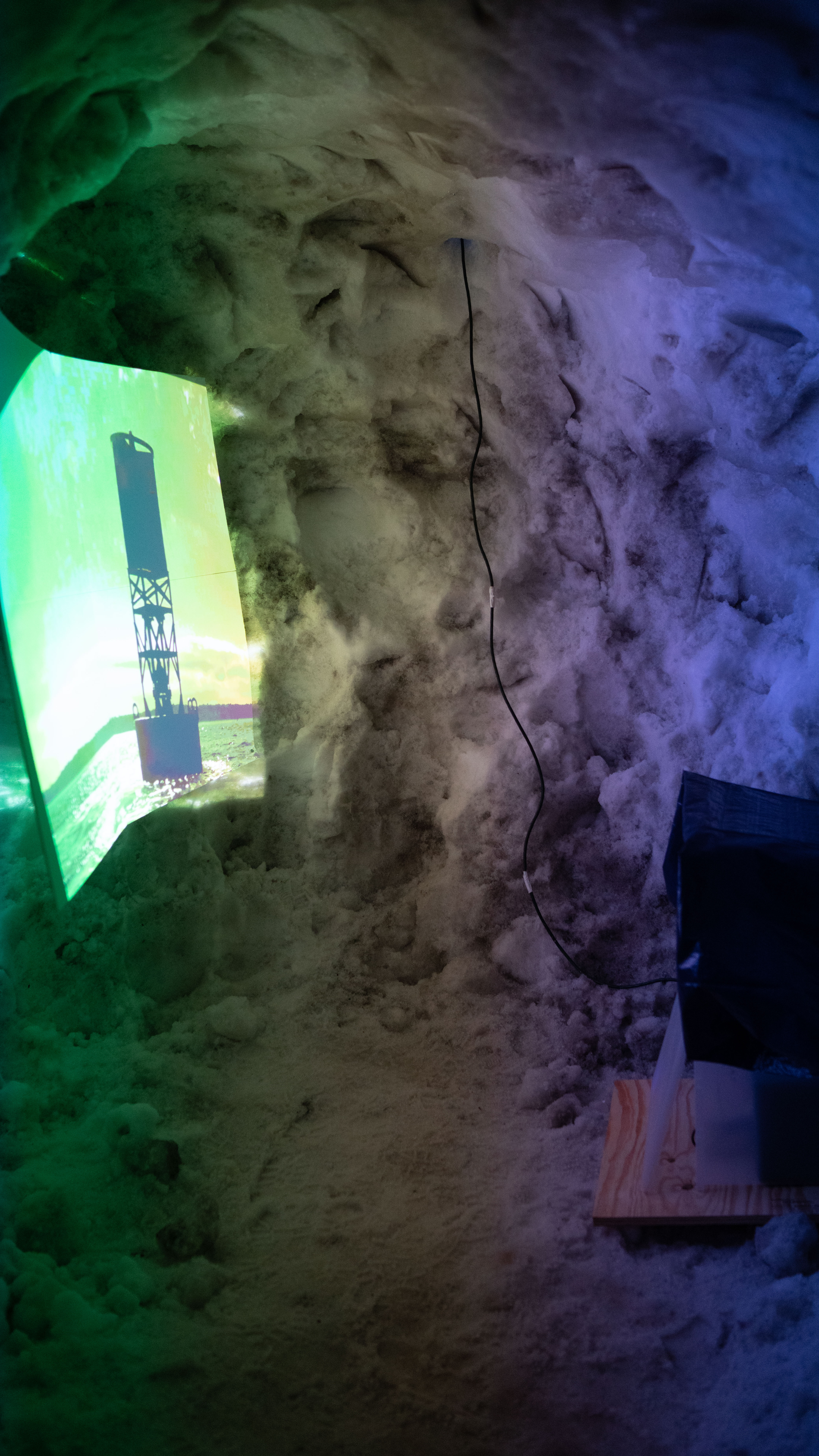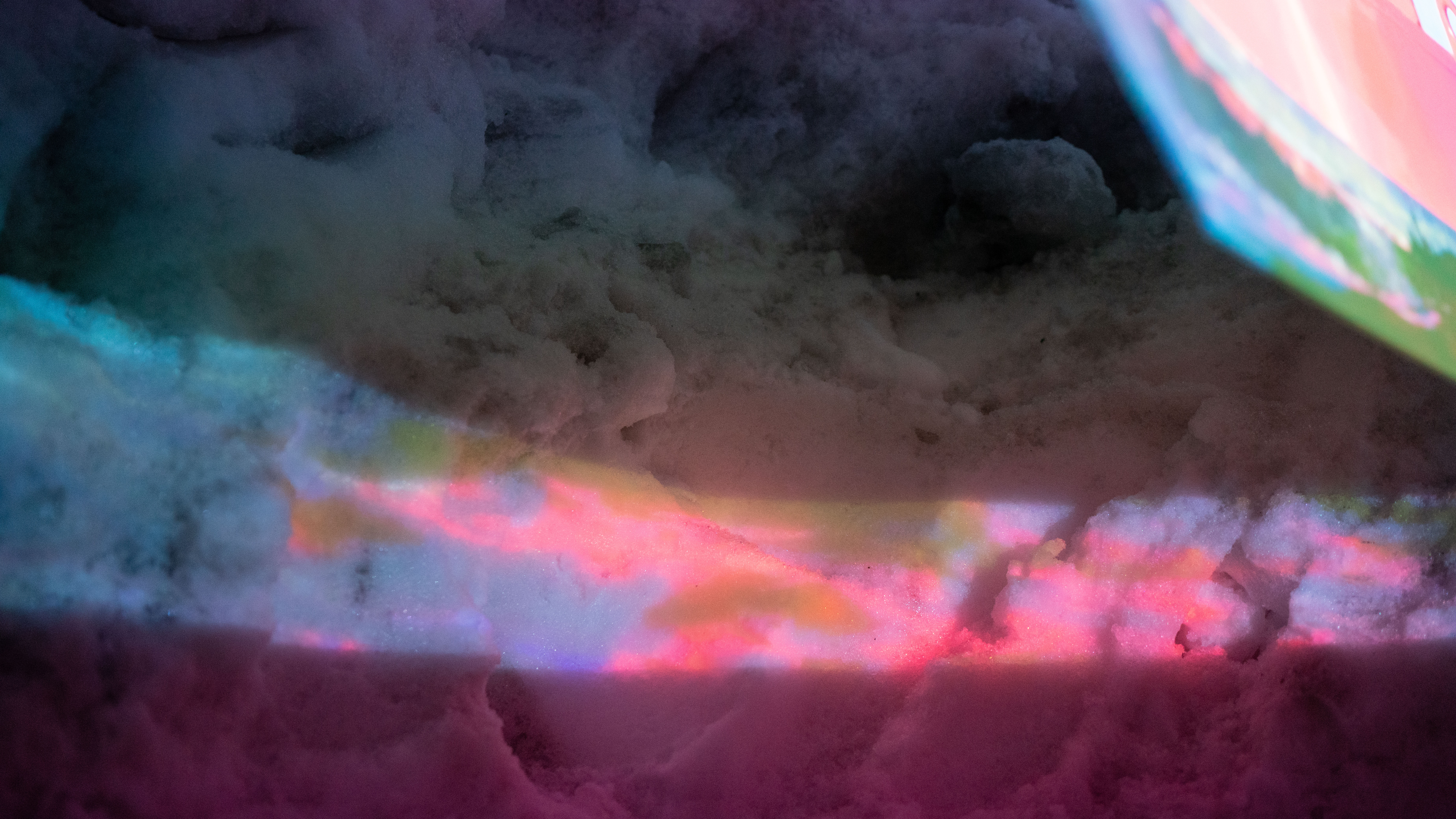 Baba Yaga Gallery is pleased to present Turning, a video by Lorenzo Bueno, in a hollowed out snow pile in the old Shop Rite parking lot in Hudson NY on Friday February 25, 2021.