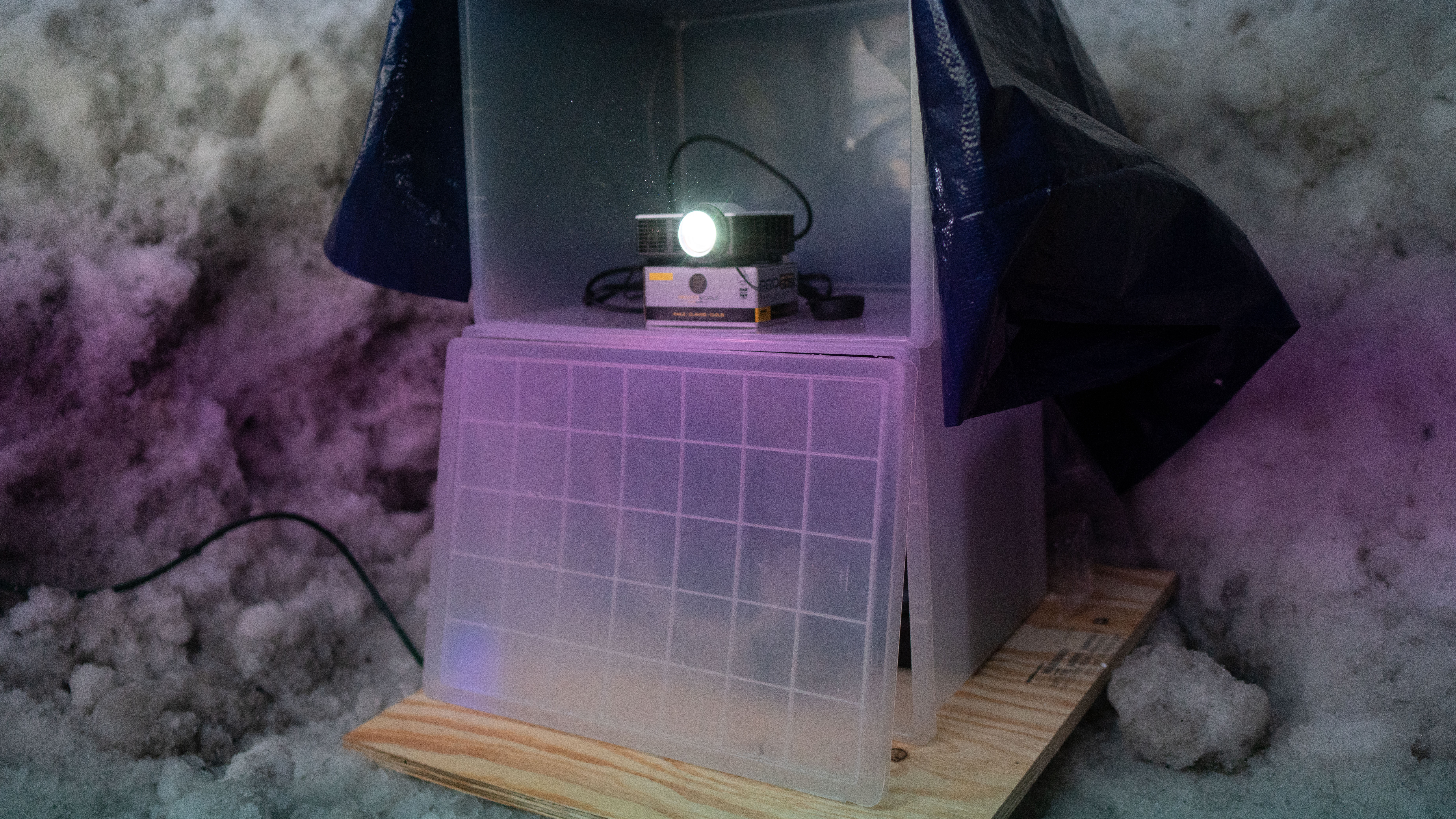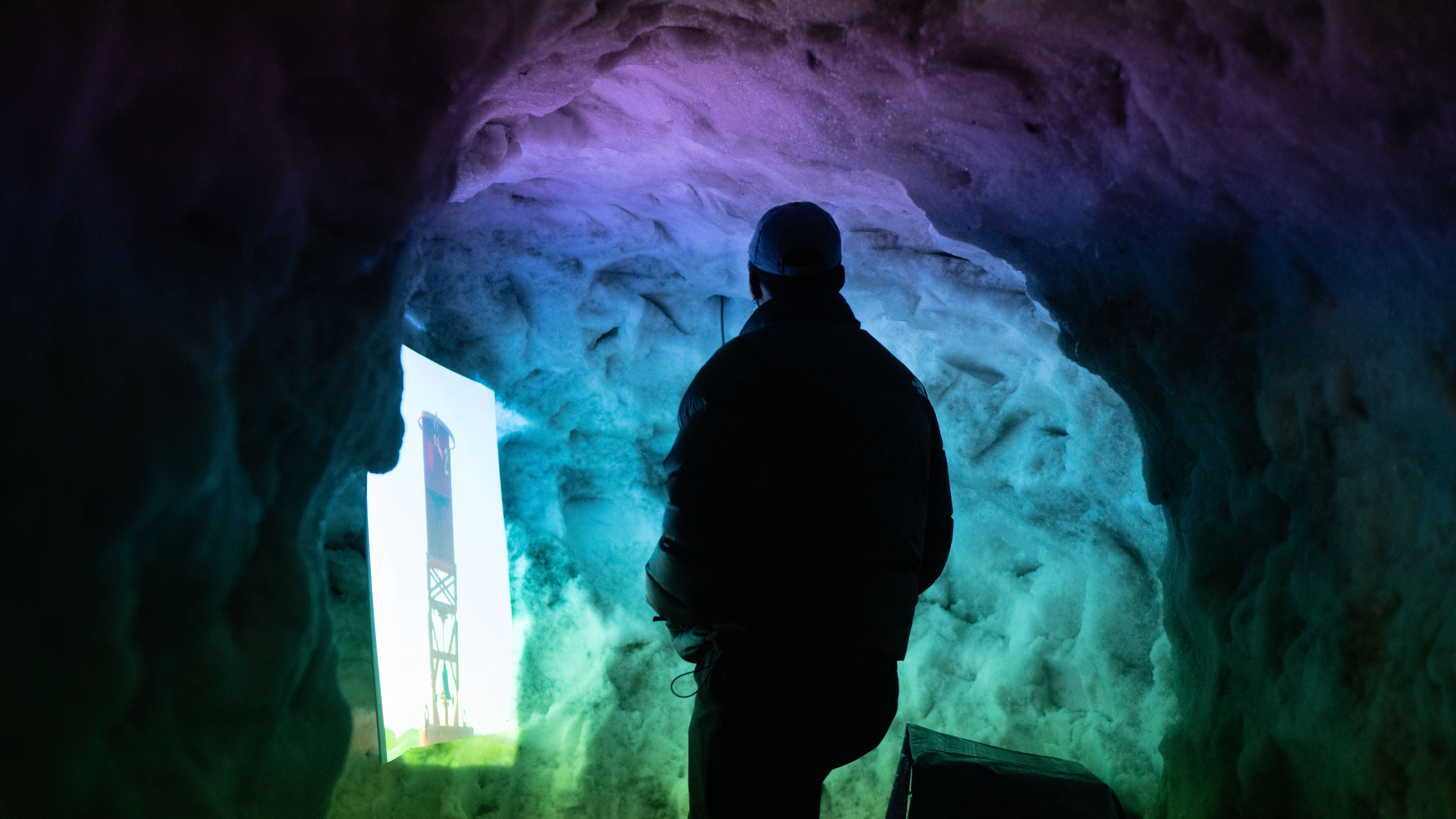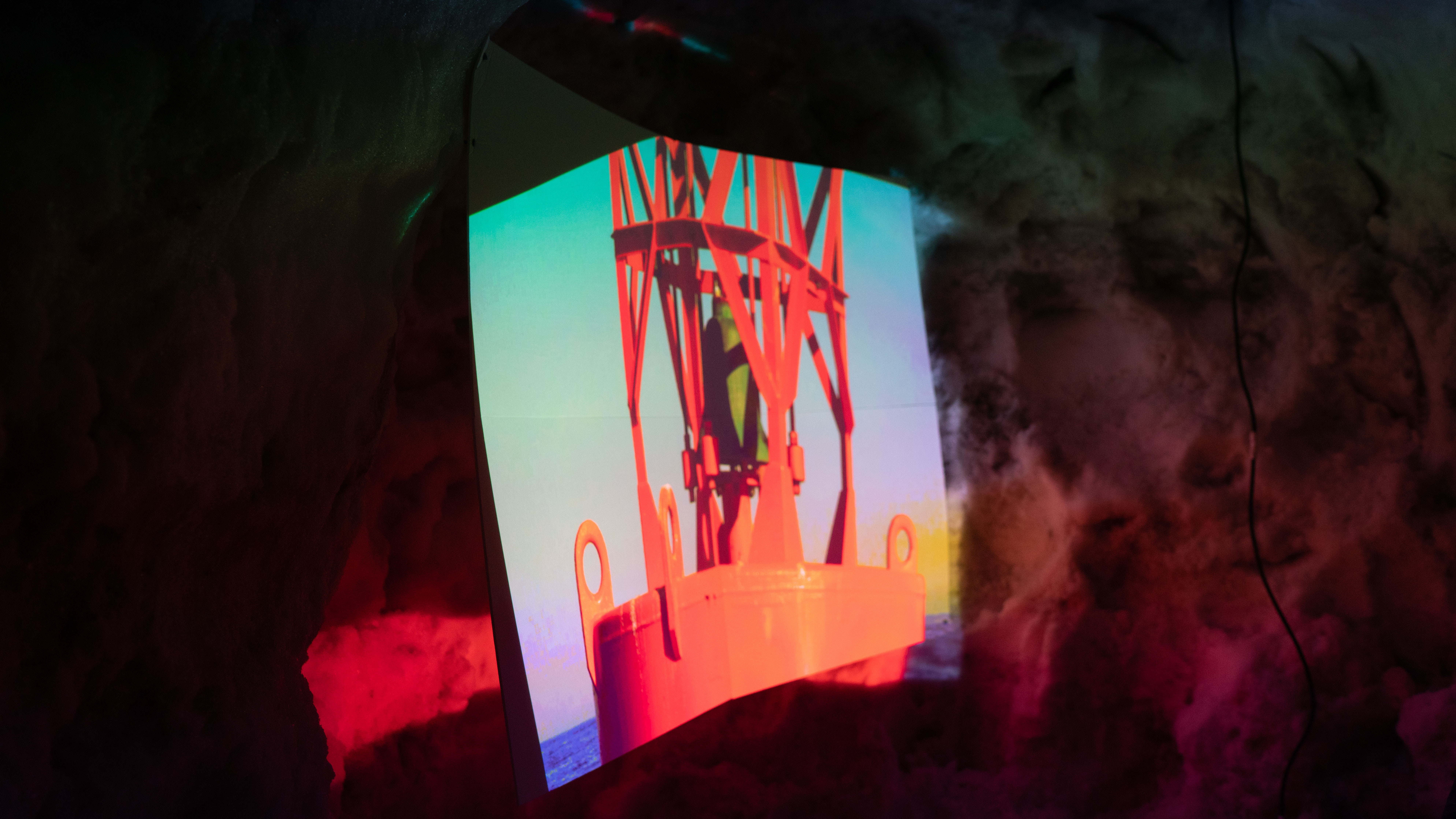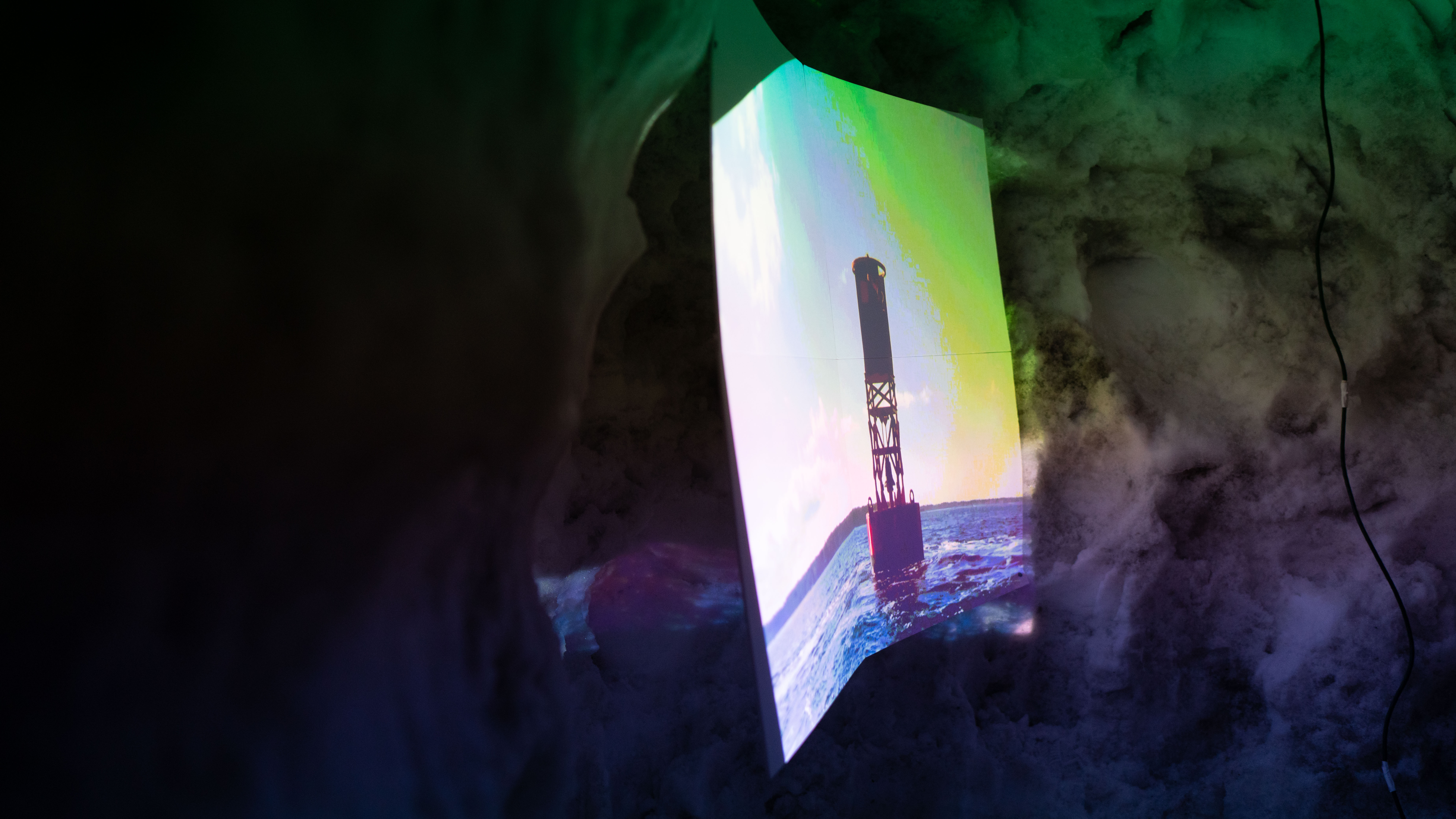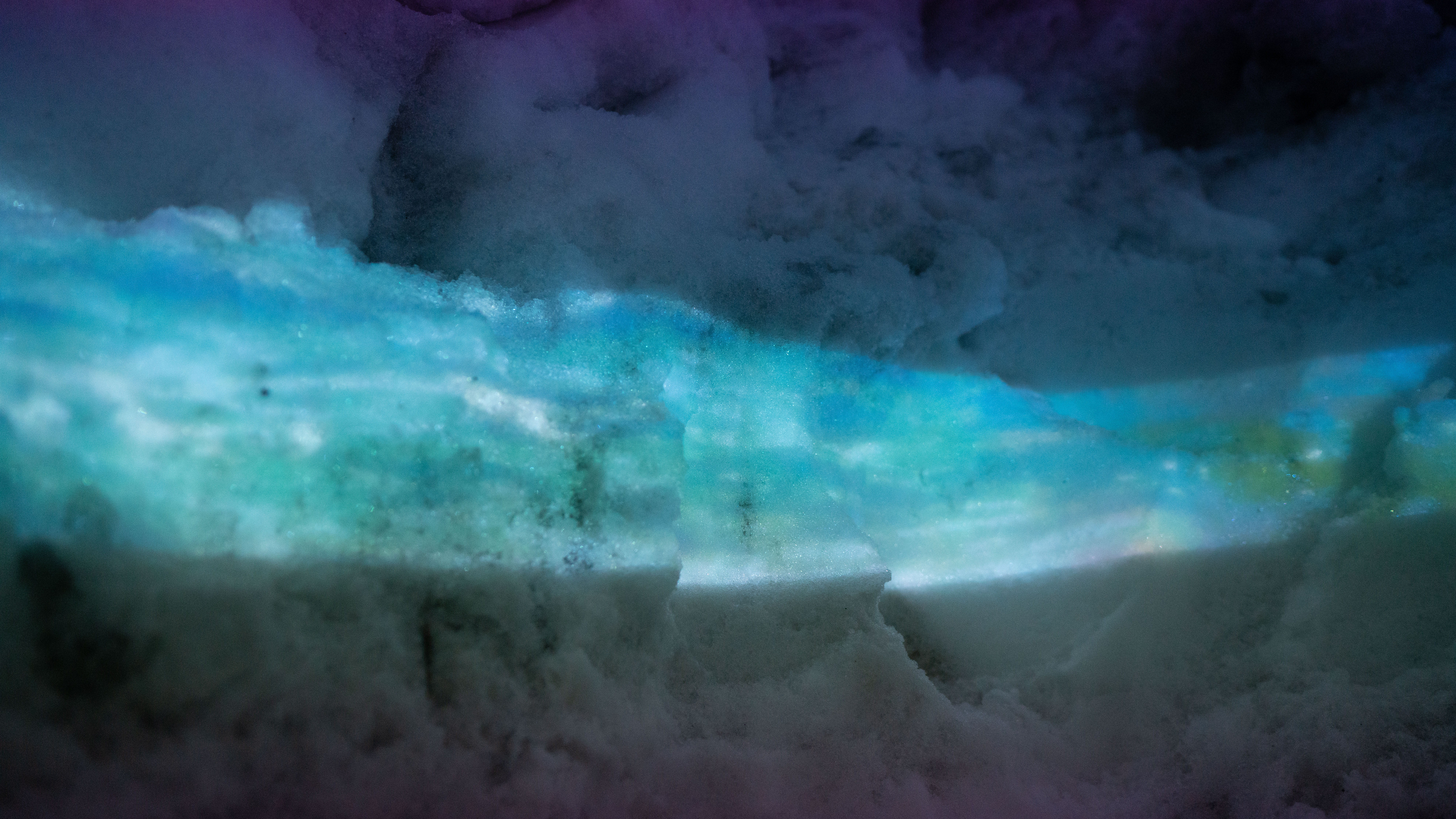Baba Yaga Gallery is pleased to present Turning, a video by Lorenzo Bueno, in a hollowed out snow pile in the old Shop Rite parking lot in Hudson NY on Friday February 25, 2021.
