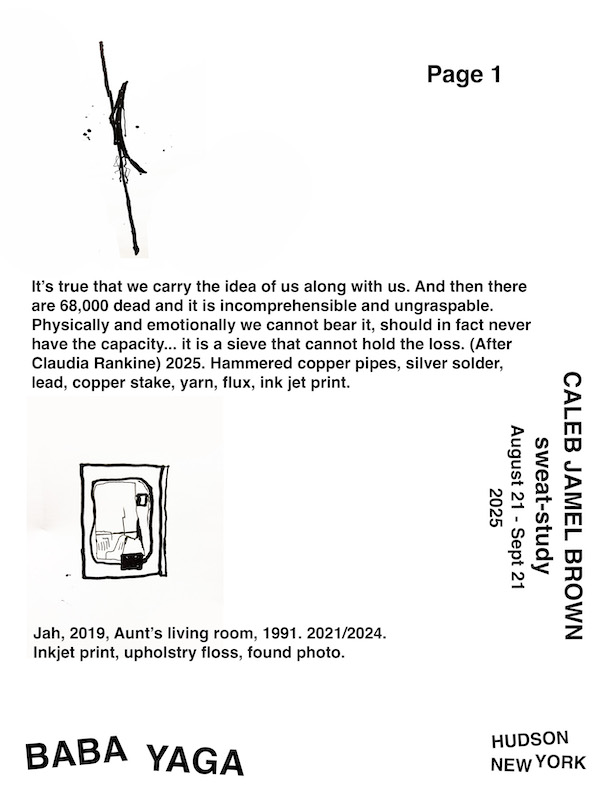 Caleb Jamel Brown (b.1993) is an interdisciplinary artist and plumber from Atlanta, GA, Currently based in Bedstuy. The Utilization of abstraction and vernacular as the foundation for larger cultural narratives is at the core of Brown’s practice, often working with photography, installation, printmaking, sculpture, painting, and video. His obsession with intersections of Black American material culture, representation through abstraction, clothes, visual vernacular, hand-me-down garments, knick-knacks, and kitschy décor. Give much of Brown’s work a devotional quality where the past and lives of elders are preserved and celebrated through objects and artifacts.