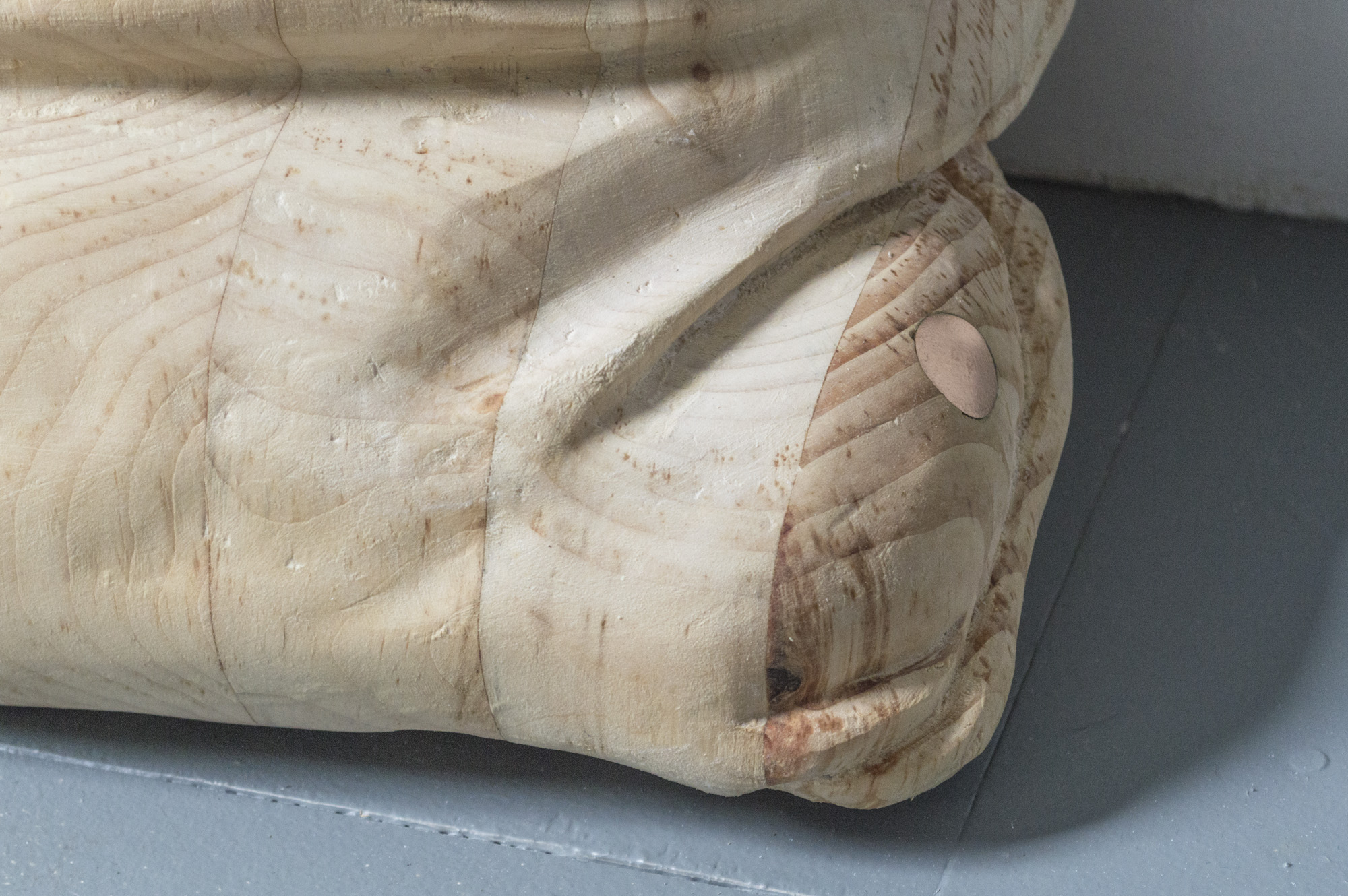 Untitled (Pillow,) 2021. Pine, pennies, soap.