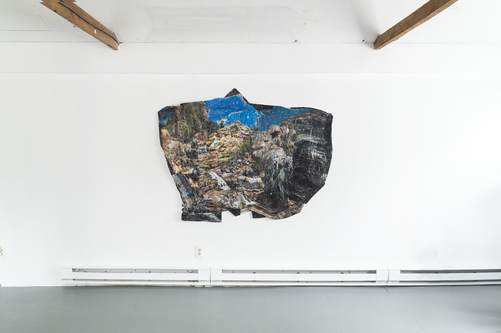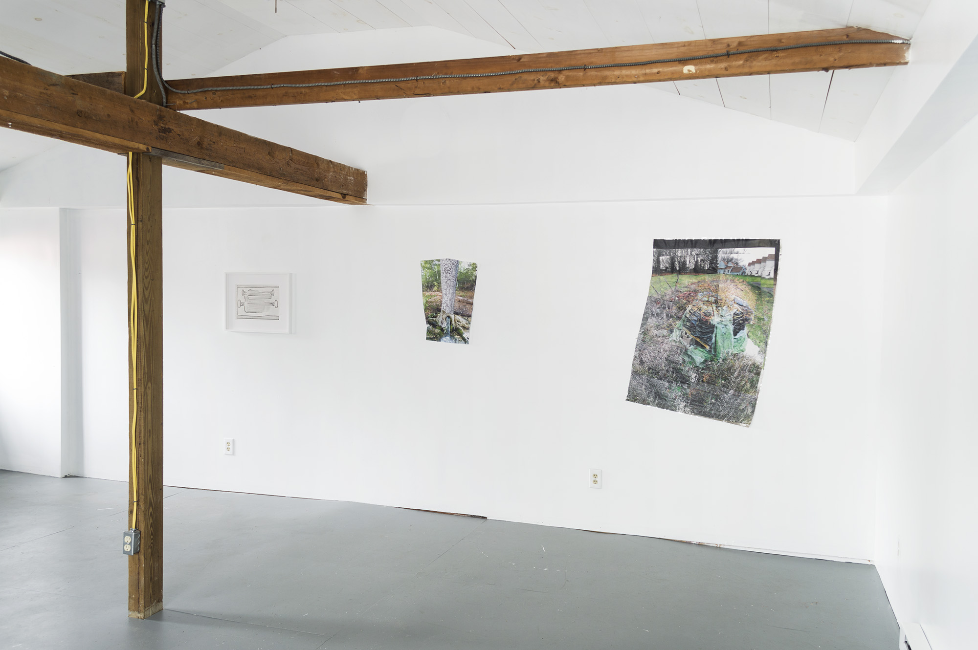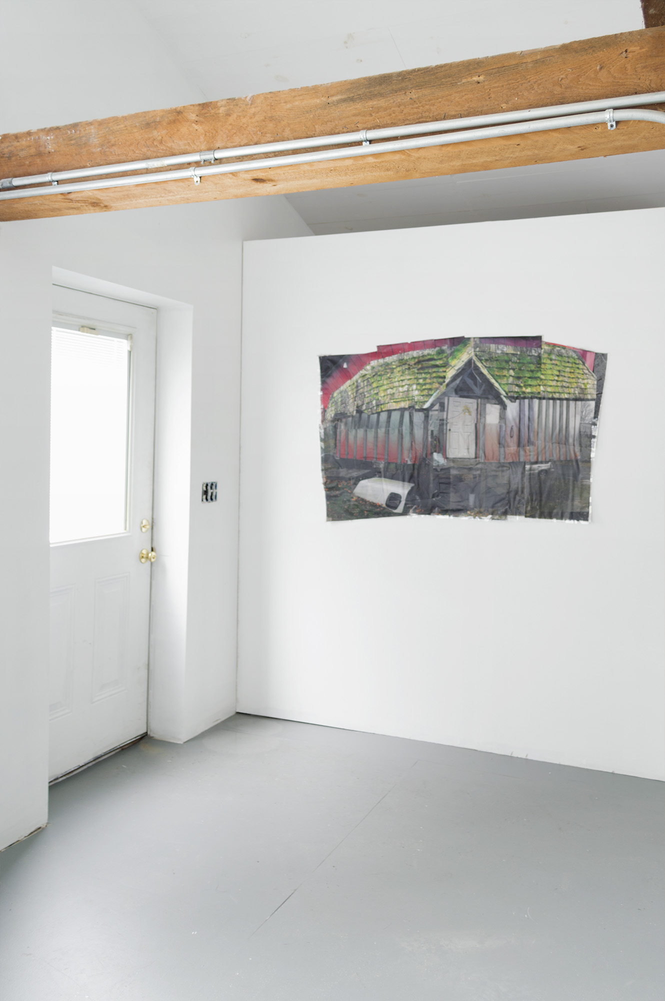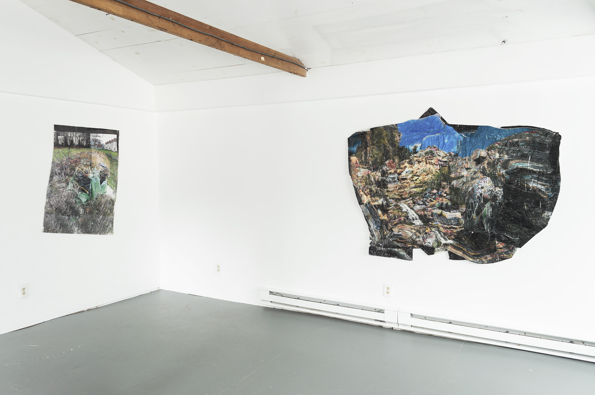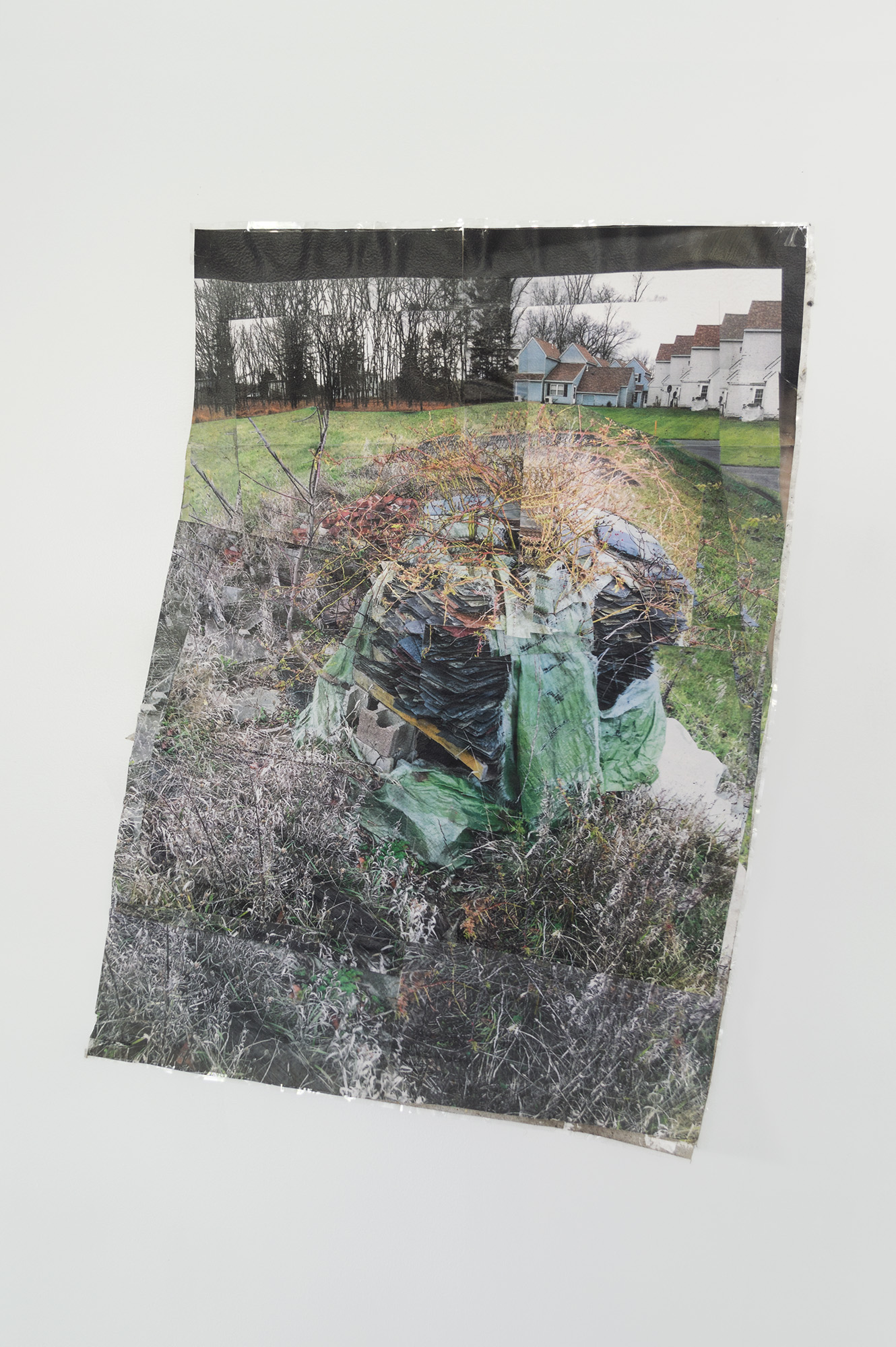 Tristan Schippa was born in 1985; Munari,1907. And yet the Xerox holds the same radical potentiality for Tristan as it seems to have held for Munari. Drawn to the general accessibility of the photocopier, as well as the formal flexibility and immediacy it offers, Schippa maintains a practice that can take place as easily at FedEx or Kinkos, as in his studio. His work involves a kind of hyper map-making, creating composite images based on his local surroundings, utilizing digital photography, xerox enlargements, occasionally satellite imagery, sometimes supplemented by images found online, which are then integrated into the landscapes, all of which are physically printed and collaged with transparent tape, glue, or whatever is available to him at the time.