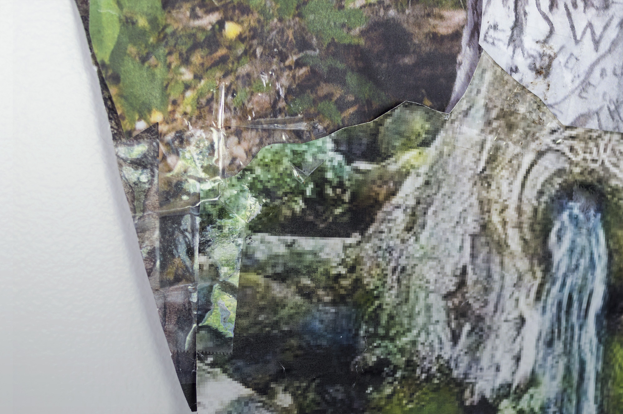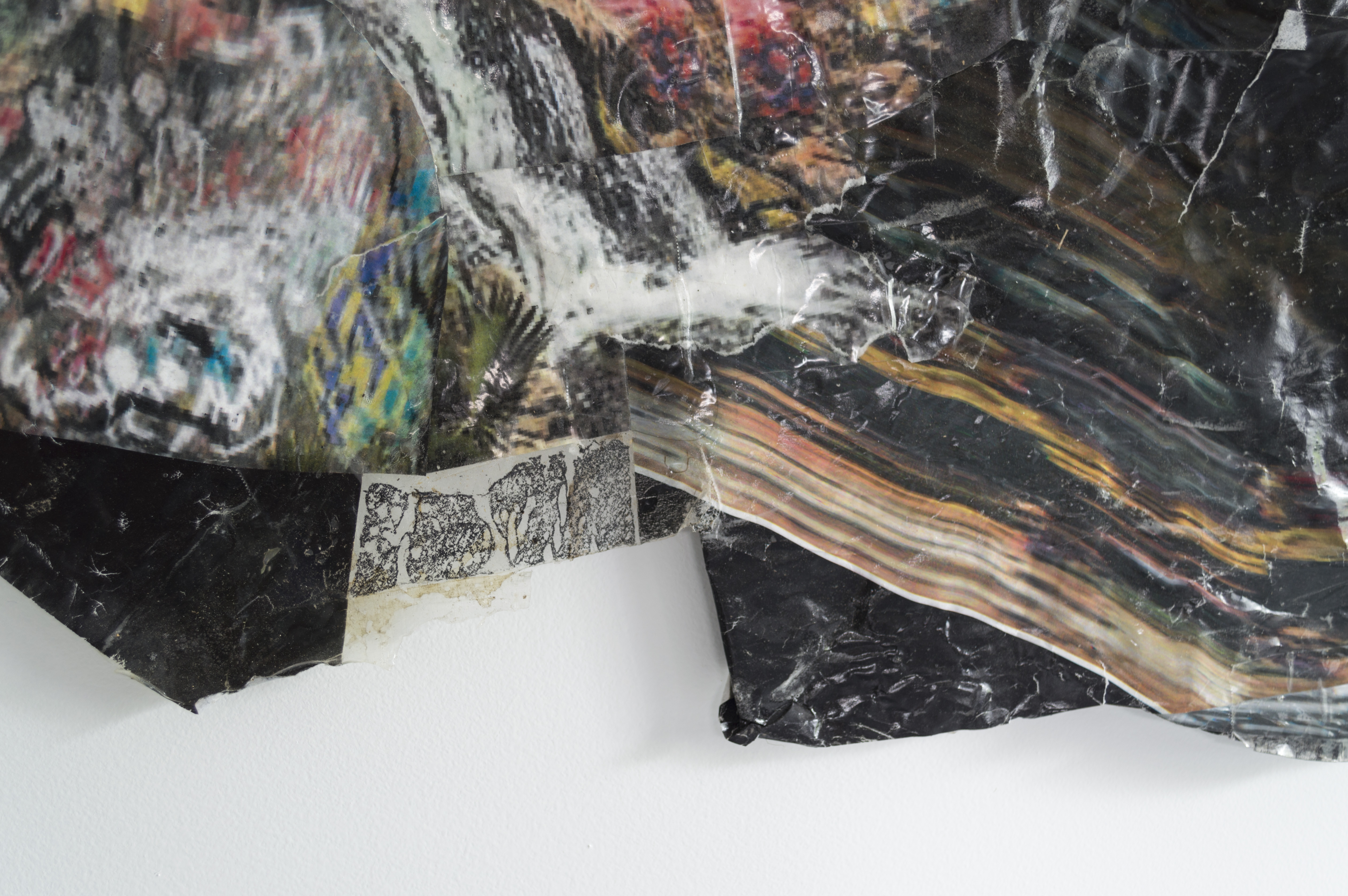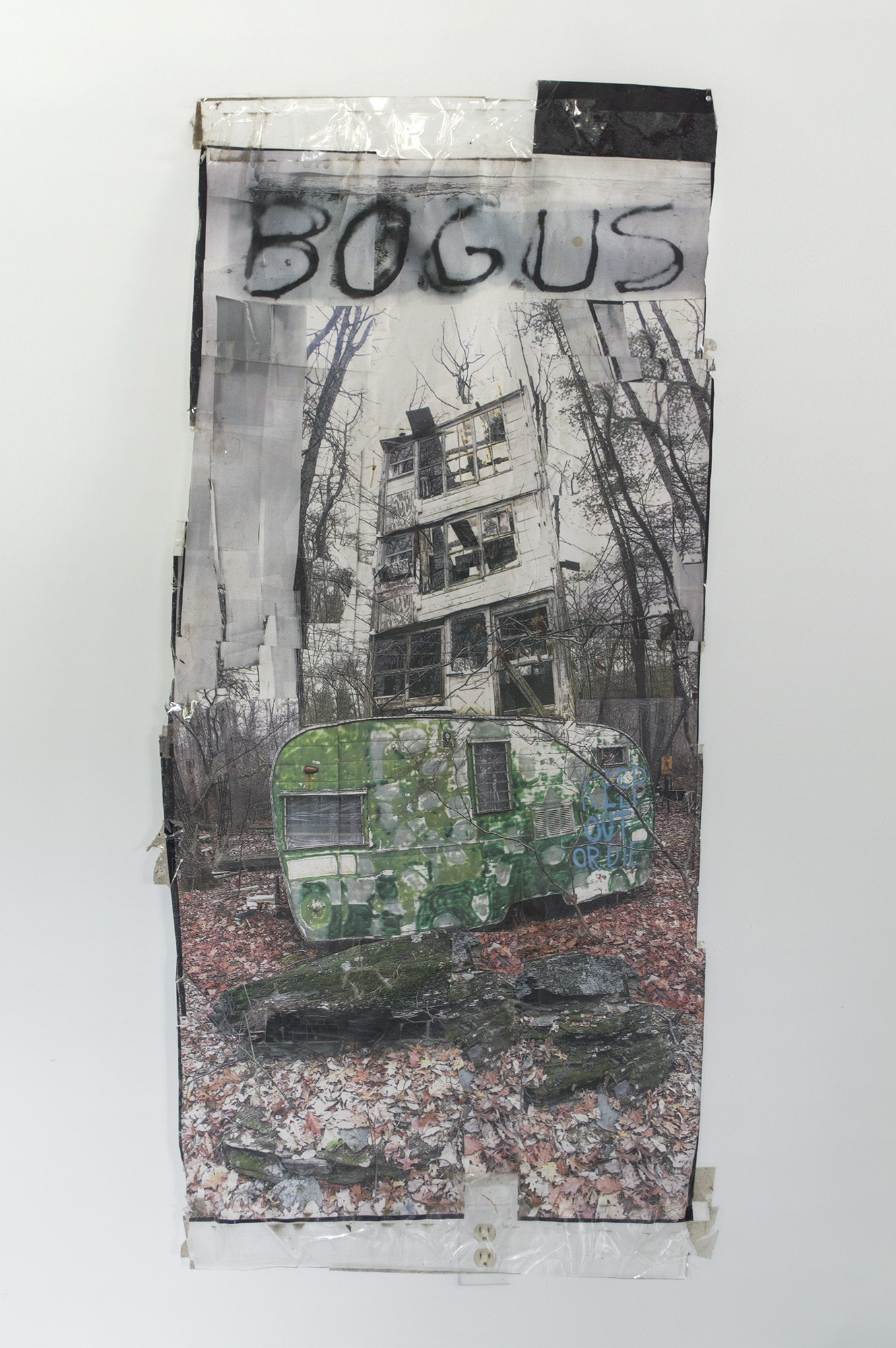 Tristan Schippa, Bogus, 2019. Color xeroxes, copies, tape, sprayed polymer.