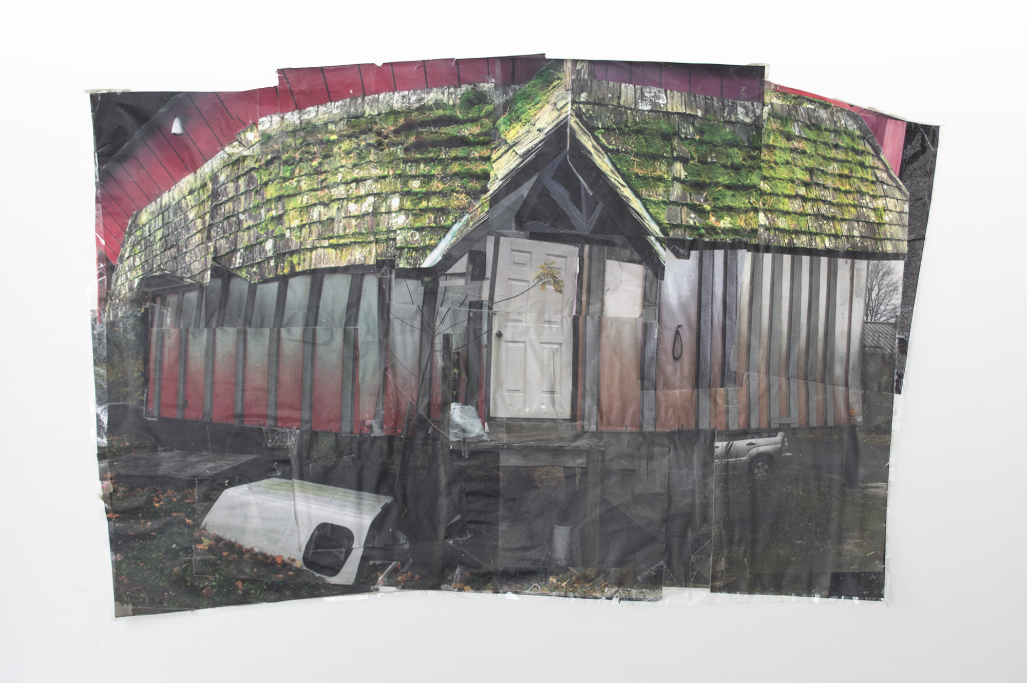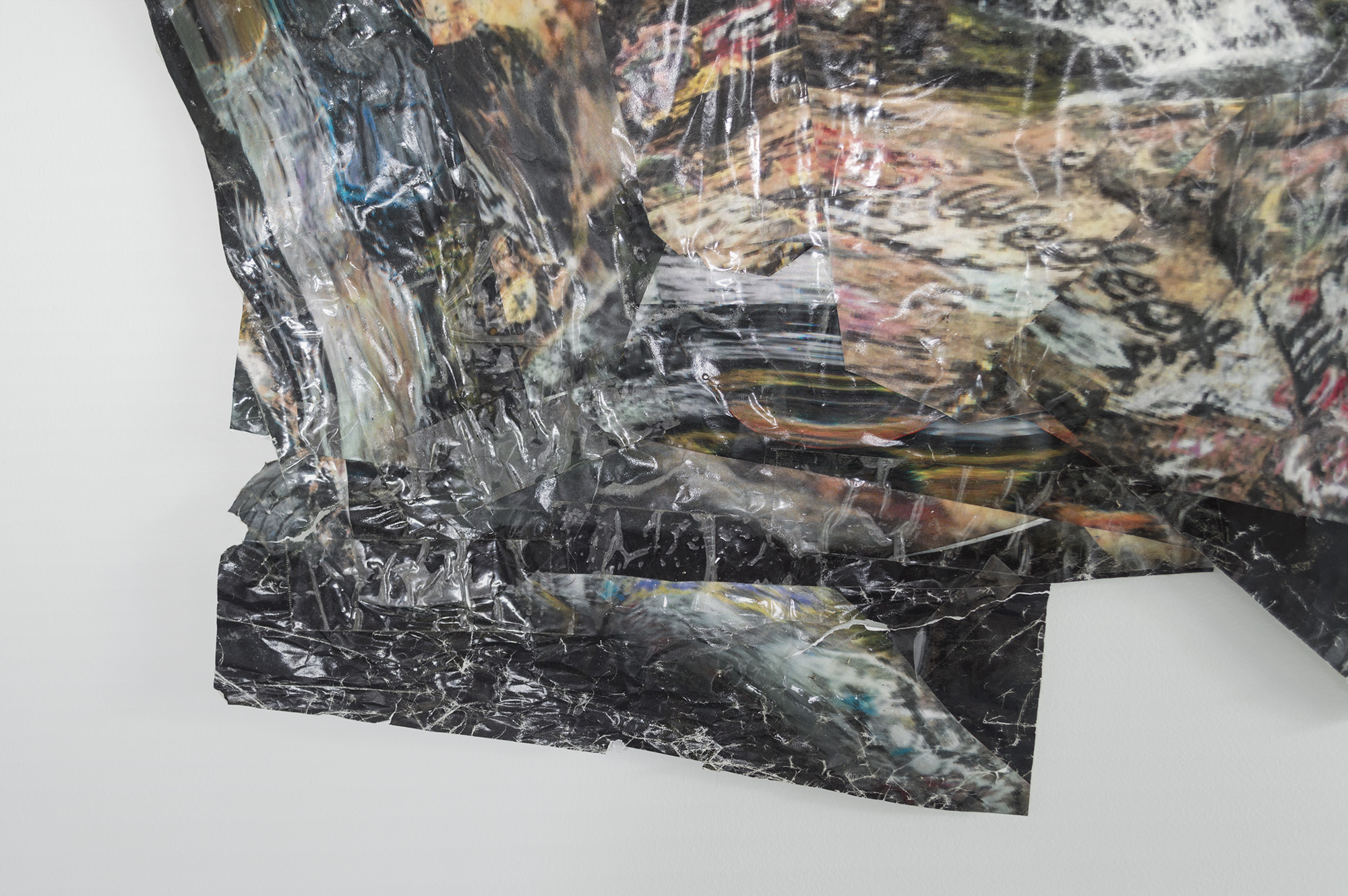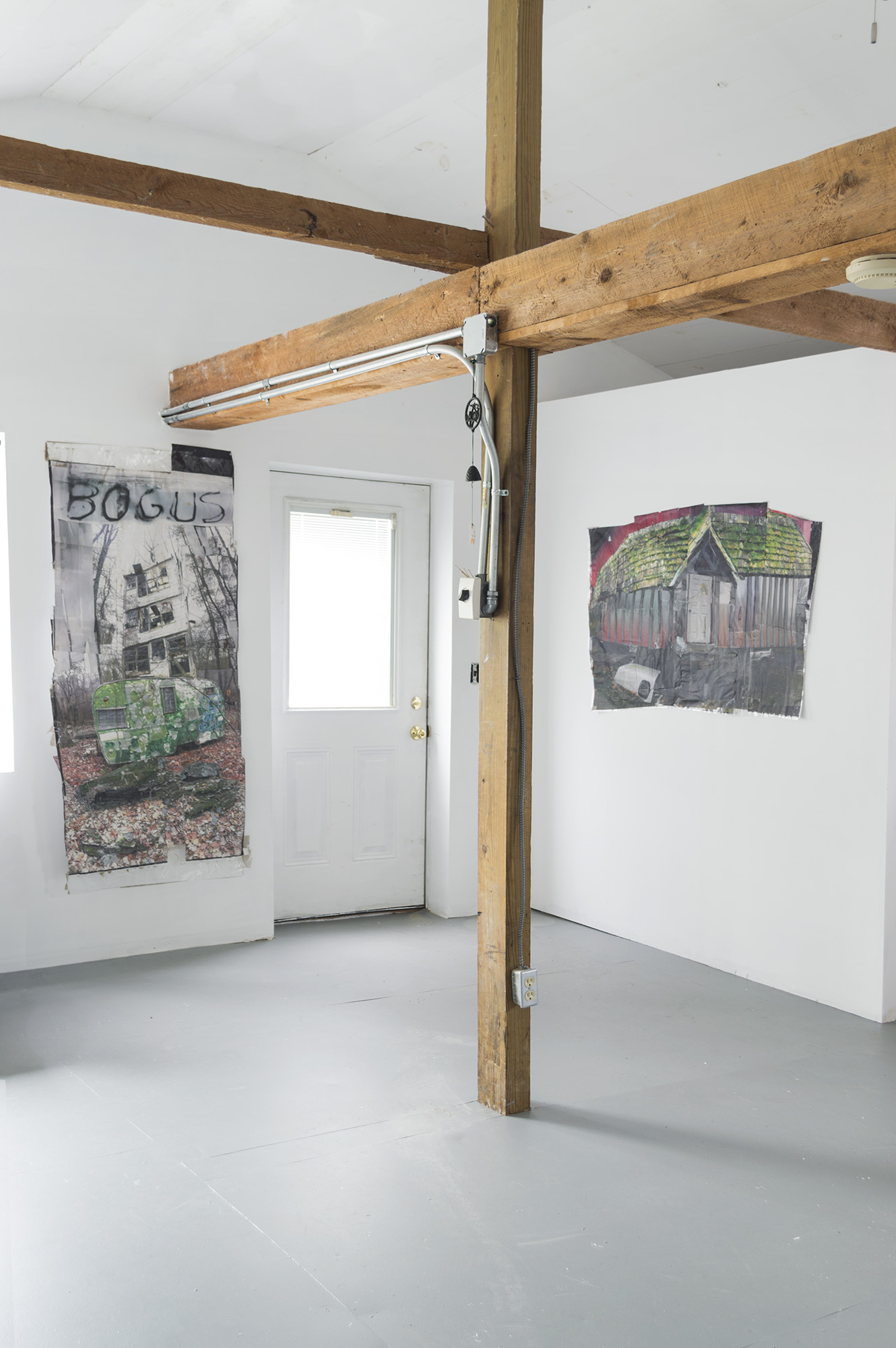 Tristan Schippa, Bogus, 2019. Color xeroxes, copies, tape, sprayed polymer.