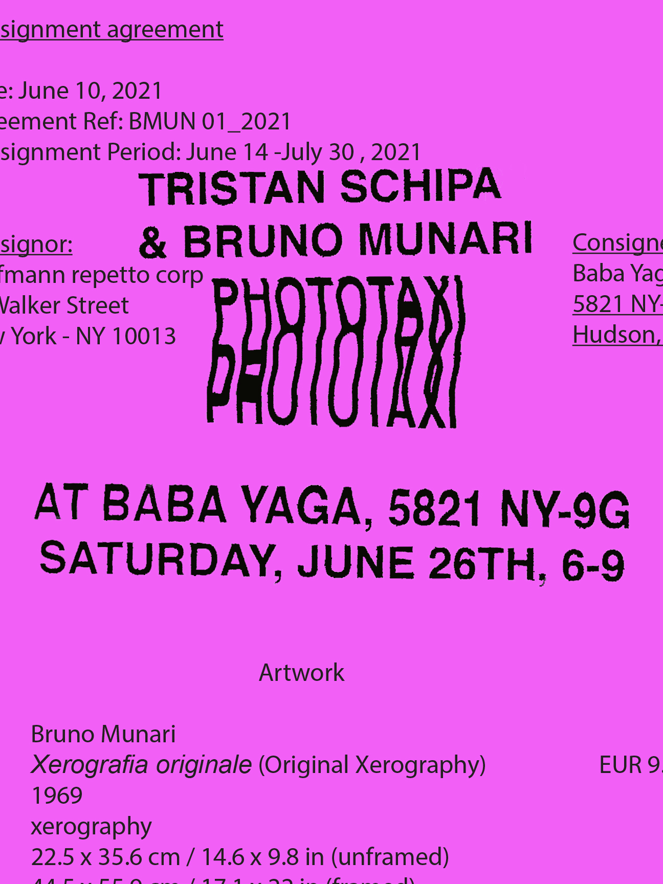 Baba Yaga is thrilled to present PHOTOTAXI, an installation of xerox works by Tristan Schipa & Bruno Munari.